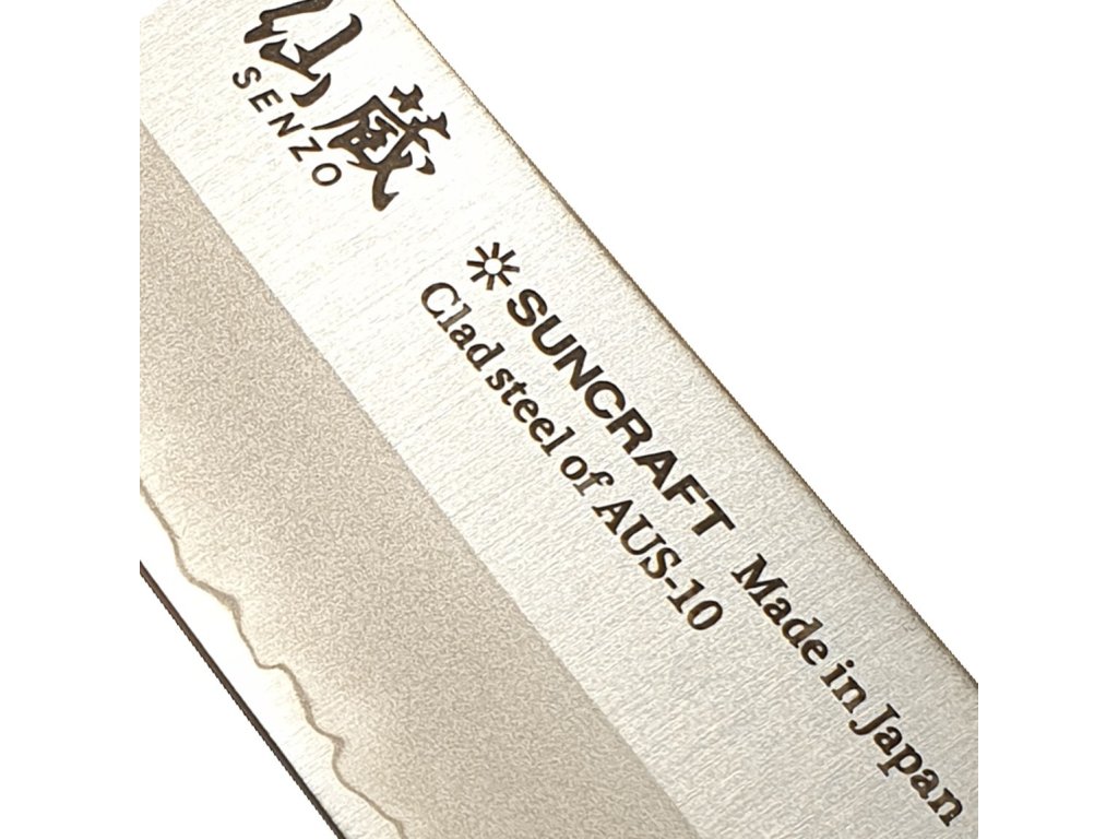 Nože Suncraft Senzo Clad jsou vyrobeny z 3 plátové oceli AUS-10 o tvrdosti (58 +/- 1 HRC). Ocel AUS-10 má stejný obsah uhlíku jako ocel 440C, ale méně chromu, takže je více houževnatá a korozně méně odolná než 440C. Přidáním vanadu se u všech zvýšila odolnost proti opotřebení.