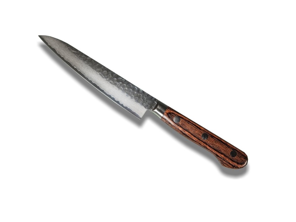 Extrémně ostrý japonský nůž Petty ze série Suncraft Senzo Universal Tsuchime Damascus s jádrem z oceli VG-10 vloženým mezi 66 vrstev damaškové oceli. Tento nůž je užitečnou alternativou velkého šéfkuchařského nože v okamžiku kdy potřebujete přesné řezy, nebo například krájení zelených fazolí nebo jiné menší zeleniny a ovoce. Jsou vhodné též pro špikování a krájení masa. Zaoblené ostří umožňuje mírné kývání při řezu. Jeho ostrost je ideální pro přípravu sendvičů všeho druhu. Japonské umění a nové technologie činí tento nůž jedinečným a nenapodobitelným.