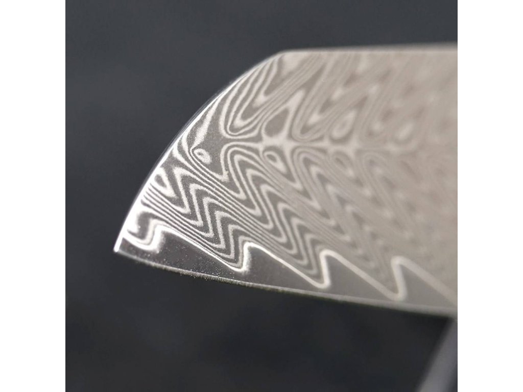Čepel nožů z Resin Future series je tvořena jádrem z damascénské oceli VG10 o tvrdosti 62+/-1 Rockwella, které je vloženo mezi 66 vrstev dvou nerezových ocelí rozdílných tvrdostí, které zajišťují mimořádnou odolnost a houževnatost. Dokonale vyvážená, přesně zúžená čepel japonského tvaru s třpytivým damascénským vzorem STORMY WAVES minimalizuje tření při řezu a zabraňuje přilepení krájeného materiálu k čepeli. Damascénský vzor připomínající rozbouřené moře STORMY WAVES je jedinečný, neopakovatelný a stane se symbolem Vaší individuality.