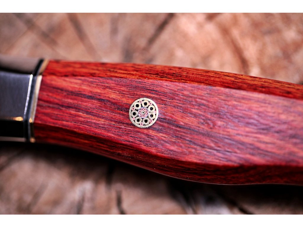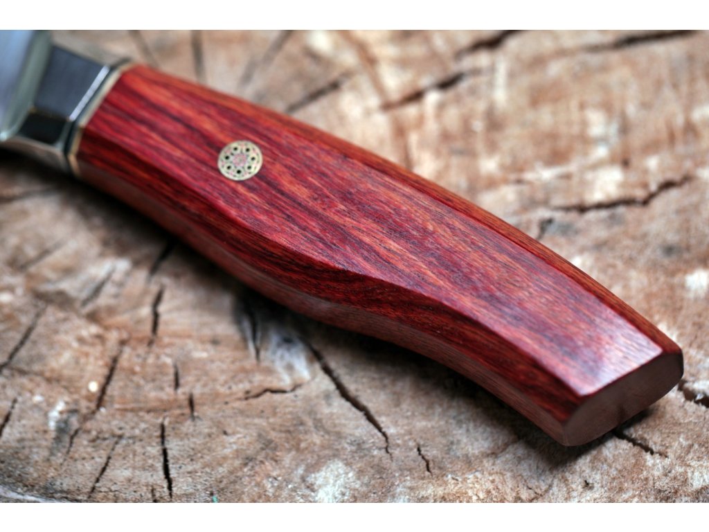 Ergonomická rukojeť západního stylu je vyrobena z přírodního dřeva ROSE WOOD (palisandr) a je ozdobena středovým mozaikovým nýtem. Vždy je pečlivě ručně leštěná, ergonomicky tvarovaná a navržena pro vynikající ruční ovládání. Speciálně navržený tvar záštity je vhodný pro asijský úchop nože. Nože z této série jsou více než vhodné pro chlapy s pořádnýma rukama.
