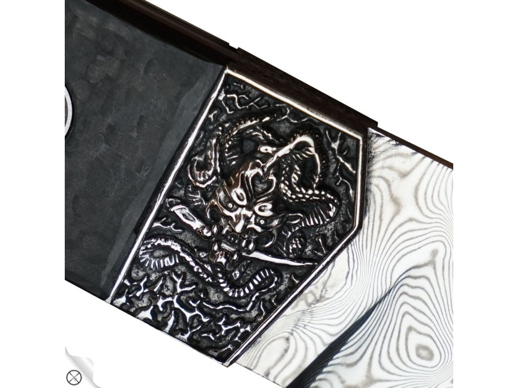 Tanto nůž Dellinger Ghost Hannya je luxusní bojový nůž z damaškové nerezové oceli 61 HRC, s rukojetí z karbonu a záštitou s motivem démonky Hannya. Styl tanto pro maximální průraznost, dodáván s koženým pouzdrem s hadí kůží a certifikátem. Limitovaná edice v praktické krabičce.