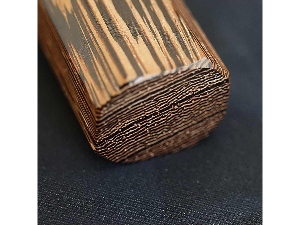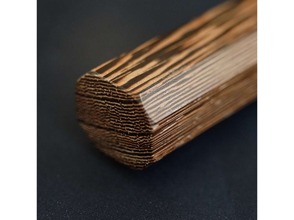 Ostrý nůž Santoku Kengata s délkou ostří 160 mm je vhodný k běžnému krájení všech potravin od zeleniny a ovoce až po maso. Japonské slovo "santoku" se zhruba označuje jako "tři ctnosti", což svědčí o všestrannosti tohoto nožového stylu a druhu řezů, kterými vyniká (řezání, rozkrájení a mletí). Čepel u nožů Santoku je širší než u ostatních kuchařských nožů a vyznačuje se odlišnou geometrií a kulatější špičkou. Díky tomu zajišťuje tento nůž minimální únik tekutin. Proto budou Vaše pokrmy plné šťávy a vitamínů. Každý nůž je ručně broušený a dosahuje vysoké ostrosti. Kengata Santoku z oceli damasteel s jádrem z VG10 má dokonale vyváženou čepel s povrchovou úpravou Tsuchime (kladívkový povrch). Povrch dává noži nejen skvělý vzhled, ale také zabraňuje přilepení krájeného materiálu k čepeli.
