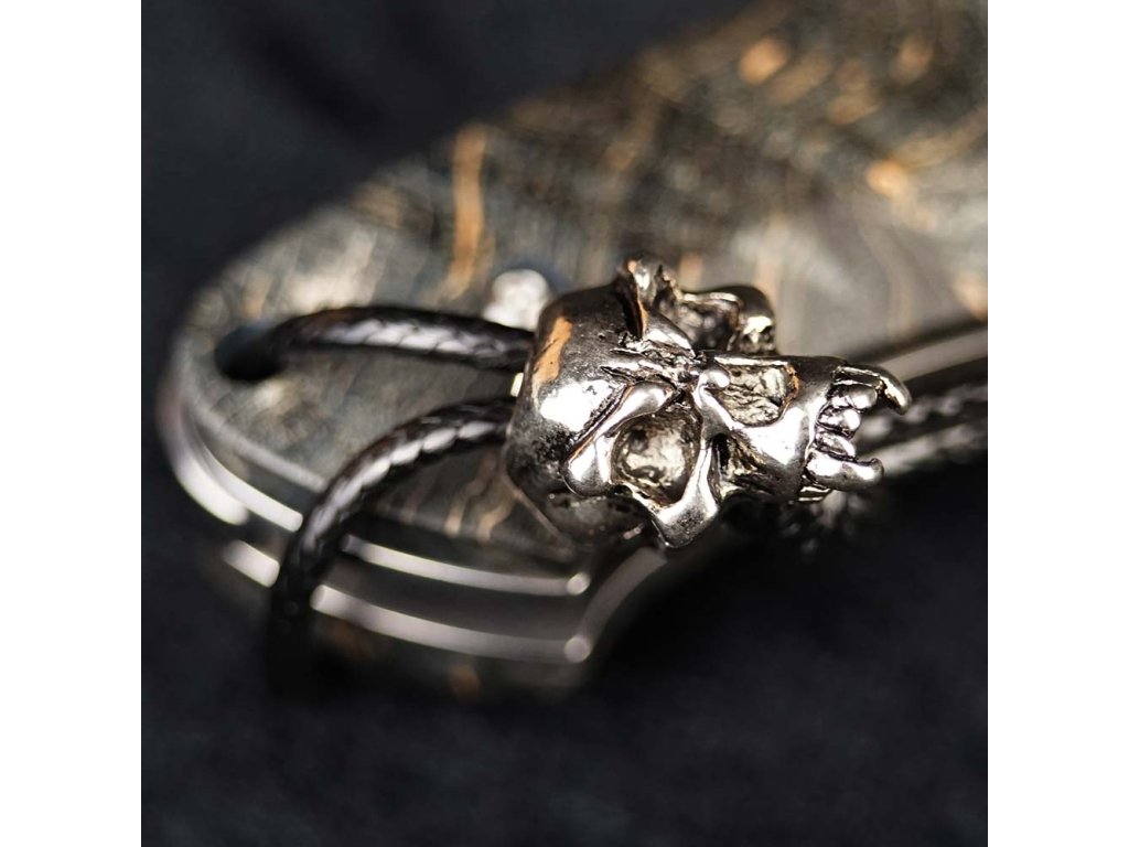 Rukojeť nože je z exotického dřeva Sapele-Wood, které je příjemné na dotek a zároveň poskytuje luxusní vzhled. Kovové detaily, masivní bolster pro pevné a jisté uchopení a stylový přívěsek ve tvaru lebky dodávají noži jedinečný charakter.