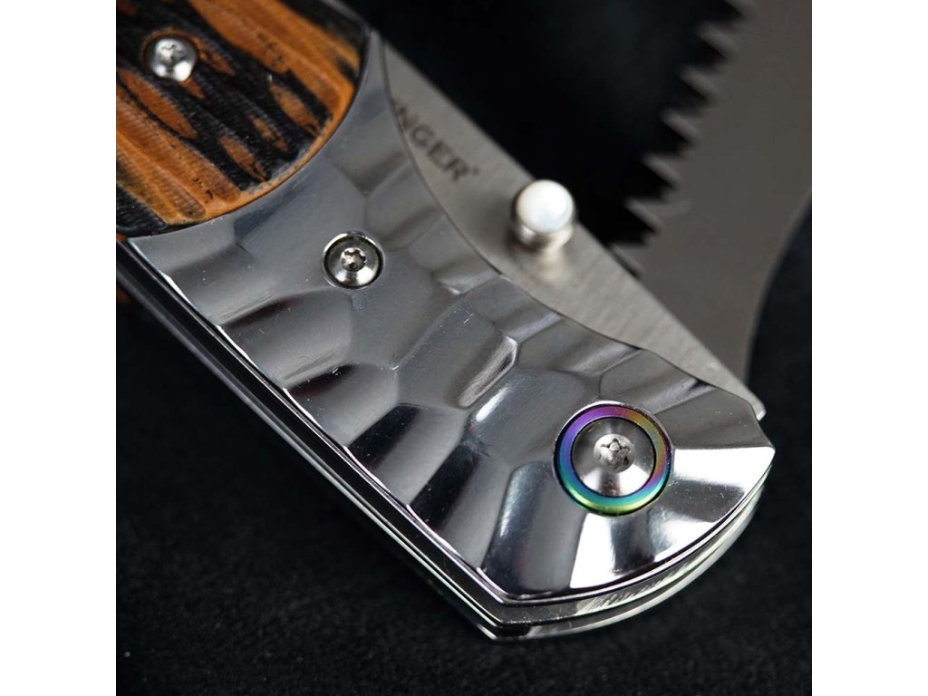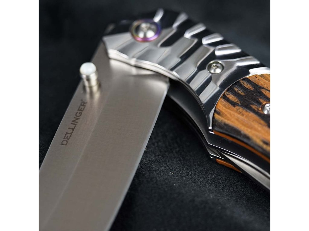 Dellinger Wilderer je ideální lovecký nůž ze skupiny EDC nožů. Má dvě čepele. Jednu ostrou, se kterou nebude žádné krájení, sekání či kuchání problém. Druhou čepelí je potřebná lovecká pilka se dvěma řadami zubů, se kterými nebude problém rozříznout zámek u jakéhokoliv zvířete. Čepele má z nástrojové oceli D2. Ocel dosahuje tvrdosti až 58 HRC, je velmi odolná proti opotřebení či korozi a snadno se brousí. Čepel je uložena v kuličkových ložiscích a pevně zajištěna pojistkou linerlock proti samovolnému zavření. Pilka z oceli D2 je polouzamčená, v otevřené poloze pevně drží, i když není vybavena pojistkou, a lze ji pohodlně otevřít za špičku.