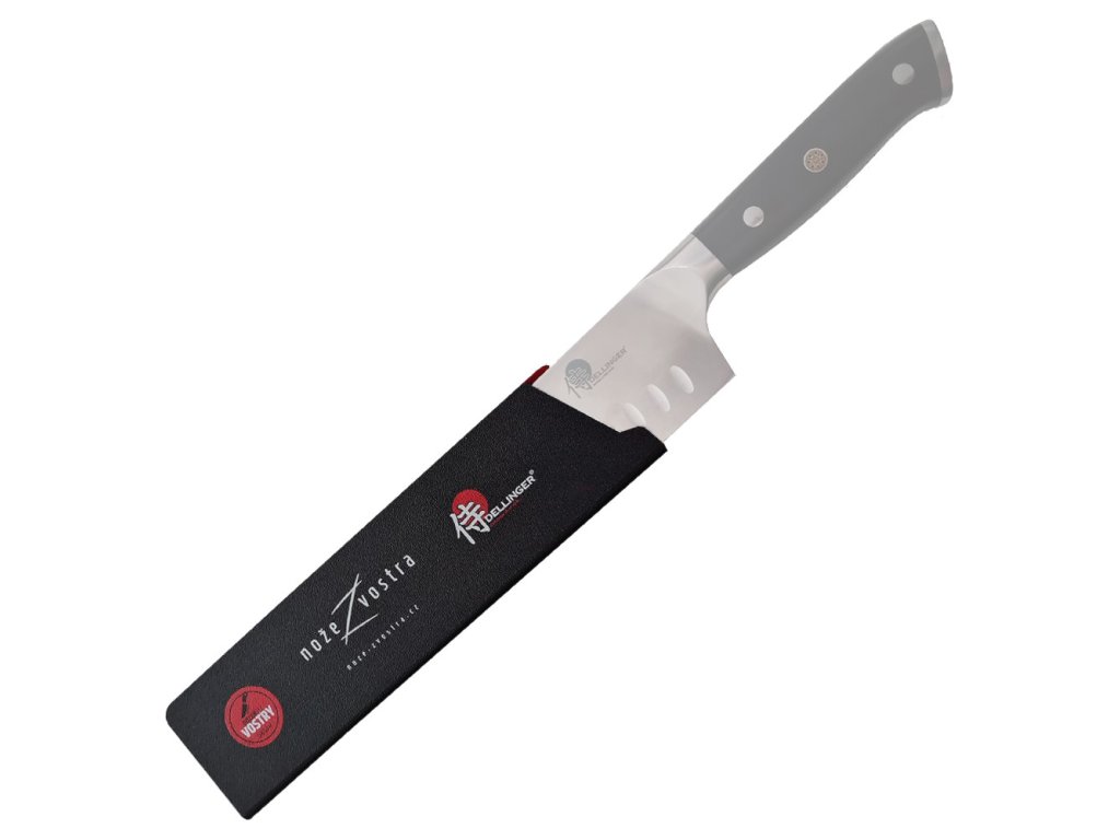 Praktický a odolný plastový kryt na čepel s měkkou plstěnou výstelkou, která zajišťuje maximální ochranu nože před poškrábáním a otupením. Tento kryt poskytuje bezpečné uložení nožů v šuplíku, chrání jejich ostří při přepravě v kufříku nebo vaku a prodlužuje životnost vašich kuchyňských nožů. Vhodné pro nože s vyšší čepelí jako Nakiri, Gyuto, Santoku.