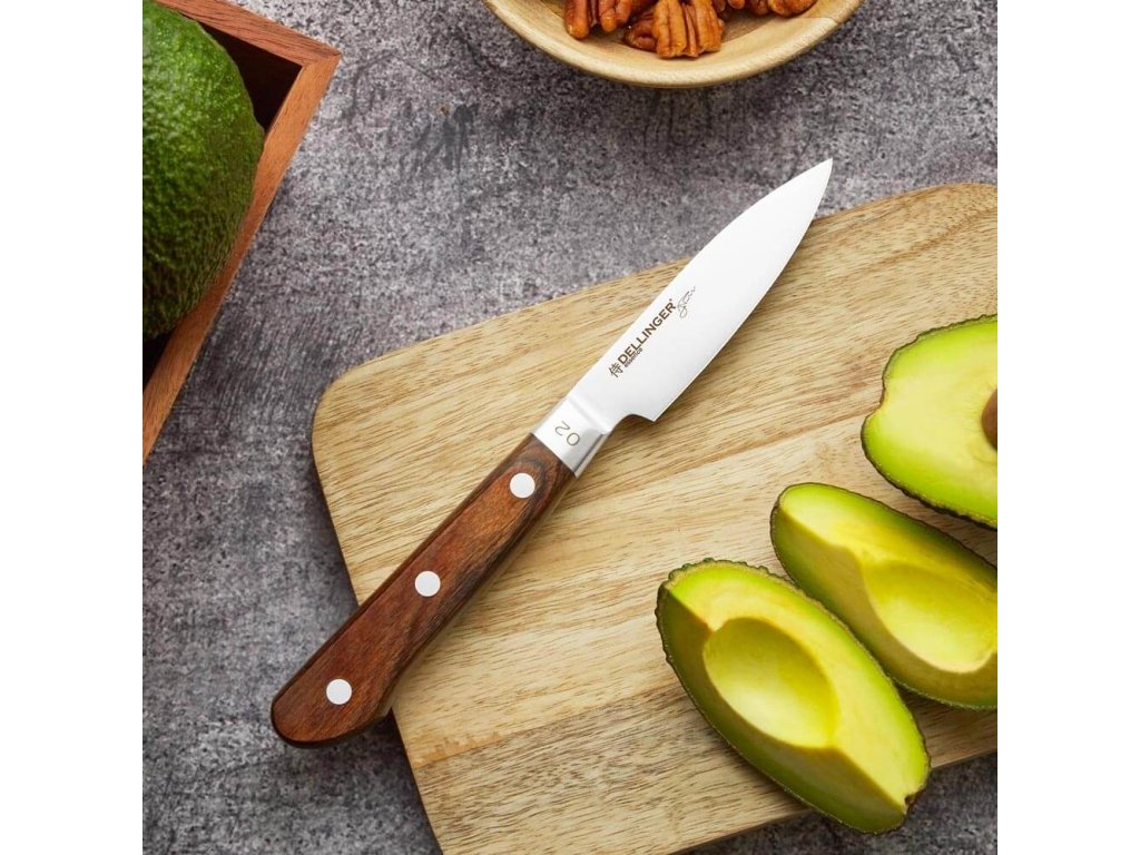 Nůž okrajovací Petty ze série Dellinger Essence s čepelí z německé oceli 1.4116 a rukojetí ze syntetického dřeva Pakkawood. Snadné loupání a vykrajování přesně tak, jak to dělaly naše babičky. Délka čepele s konvexním zužováním 80 mm.