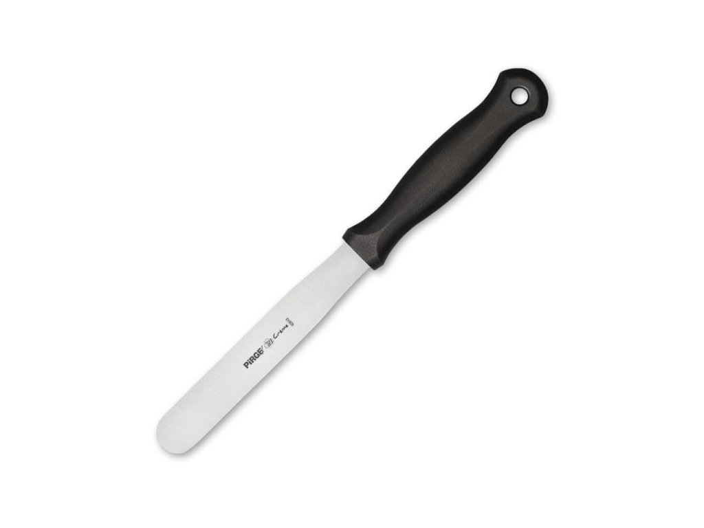 Paletka rovná PIRGE CREME z německé nerezové oceli 1.4301 a rukojetí z polypropylenu (PPC). Paletka je vhodná ke zdobení dortů. Délka 120 mm, šířka 18 mm.