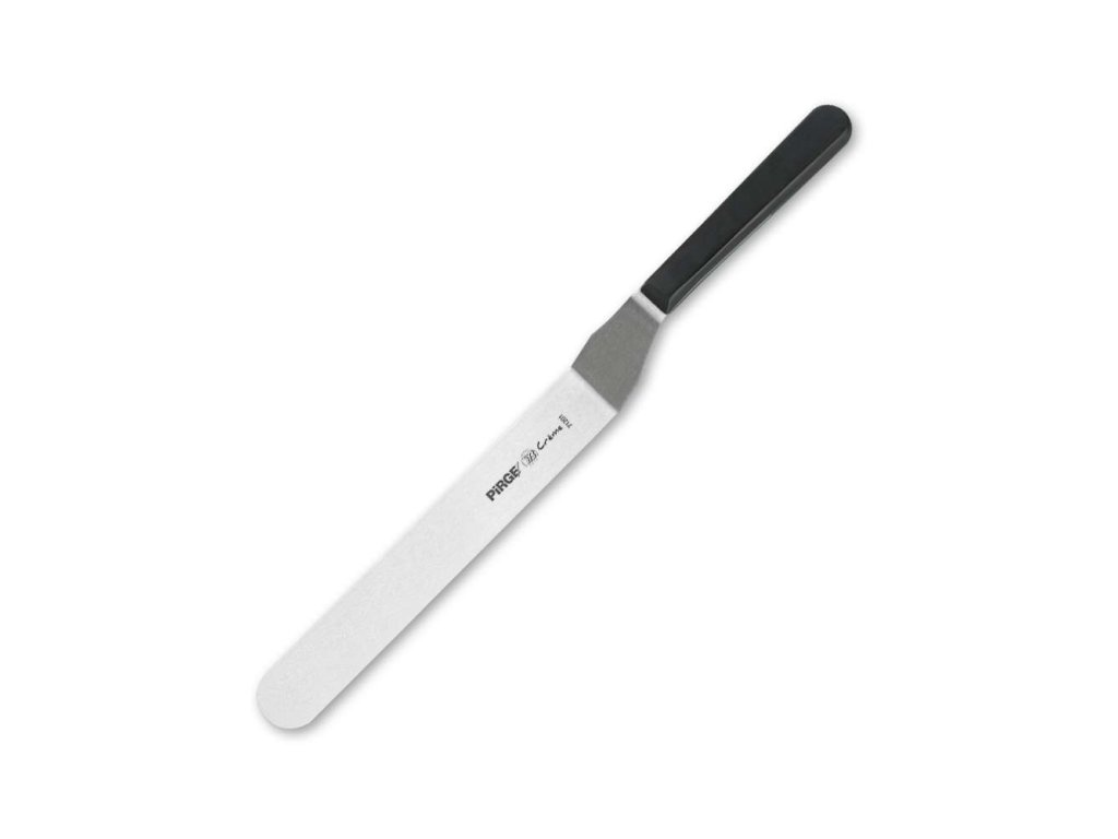 Paletka zakřivená PIRGE CREME z německé nerezové oceli 1.4301 a rukojetí z polypropylenu (PPC). Paletka je ideální pro zdobení dortů. Délka 240 mm, šířka 34 mm.