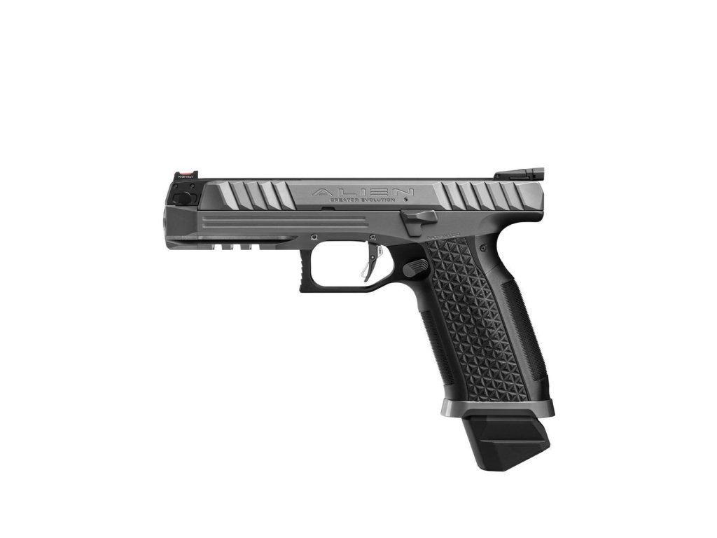 Alien Creator je zbrusu nová pistole od česko-slovenského výrobce Laugo Arms, která vznikla na základě požadavků a zpětné vazby střelců. Creator se tak vyznačuje sníženým úhlem rukojeti připomínajícím tradiční 1911 a přepracovaným závěrem s hlubšími drážkami pro ještě lepší manipulaci. Odvětrávaný rám pomáhá s odváděním tepla z hlavně a modulární systém střenek, který si každý střelec může nakonfigurovat podle svých potřeb. Pro Kit obsahuje lištu se světlovodnými mířidly, lištu s kolimátorem Laugo, rozšíření zásobníkové šachty, 3 zásobníky a kufr Nanuk. Každý střelec dokáže střílet s pistolí Alien rychleji bez ztráty přesnosti. To je způsobeno nejnižším uložením hlavně ze všech vyráběných pistolí. Osa hlavně je 1,7 mm pod osou úchopu. Výsledkem je prakticky nulový zdvih při výstřelu. S pistolí Alien jsou střelci mnohem přesnější, díky hlavni napevno uložené v rámu zbraně, což v kombinaci s precizním zpracováním přispívá k výjimečné přesnosti této zbraně. Střelec má pistoli Alien neustále pod kontrolou, i při nejrychlejší střelbě. Je to díky systému brždění závěru odběrem plynu vyvinutém firmou Laugo Arms. Čím je silnější použitý náboj, tím silněji píst brzdí závěr. Střelci tím pádem připadá zpětný ráz téměř stejný u jakéhokoliv použitého střeliva. Pistole Alien se dá extrémně snadno přestavit pro různé účely střelby. Pouze vymáčknutím jediného čepu, můžete vyměnit horní lištu a tím změnit pevná mířidla na kolimátor, nebo dokonce přidat lištu Picatinny. Dále také lze Alien upravit pro divizi OPEN, to zahrnuje kompenzátor, OPEN horní lištu, šachtu zásobníku a další… Na pevno usazená mířidla jsou velkou výhodou. Jelikož se horní lišta, na které jsou upevněna mířidla, nepohybuje (a zároveň má zbraň velmi malý zdvih), má střelec neustálou kontrolu nad obrazem mířidel. Díky této konstrukci se také výrazně prodlouží životnost Vašeho kolimátoru, který nepoškozují rázy vznikající při pohybu závěru. Zbraň je dodávána v odolném kufru Nanuk, dále základní chemií pro vyčištění, třemi zásobníky, lištou s mikrometrickým hledím a světlovodnou muškou, rozšířením zásobníkové šachty a lištou s kolimátorem Laugo. Váha zbraně: 1,205kg Materiál rámu: ocel Délka hlavně: 124mm Kapacita zásobníku: 17 ran Spoušťový mechanismus: hybridní