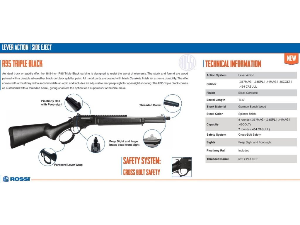 Puška opak. Rossi, Mod: R95 Triple Black, Ráže: .44 RemMag, hl: 16,5" (419mm), 8 ran,černá