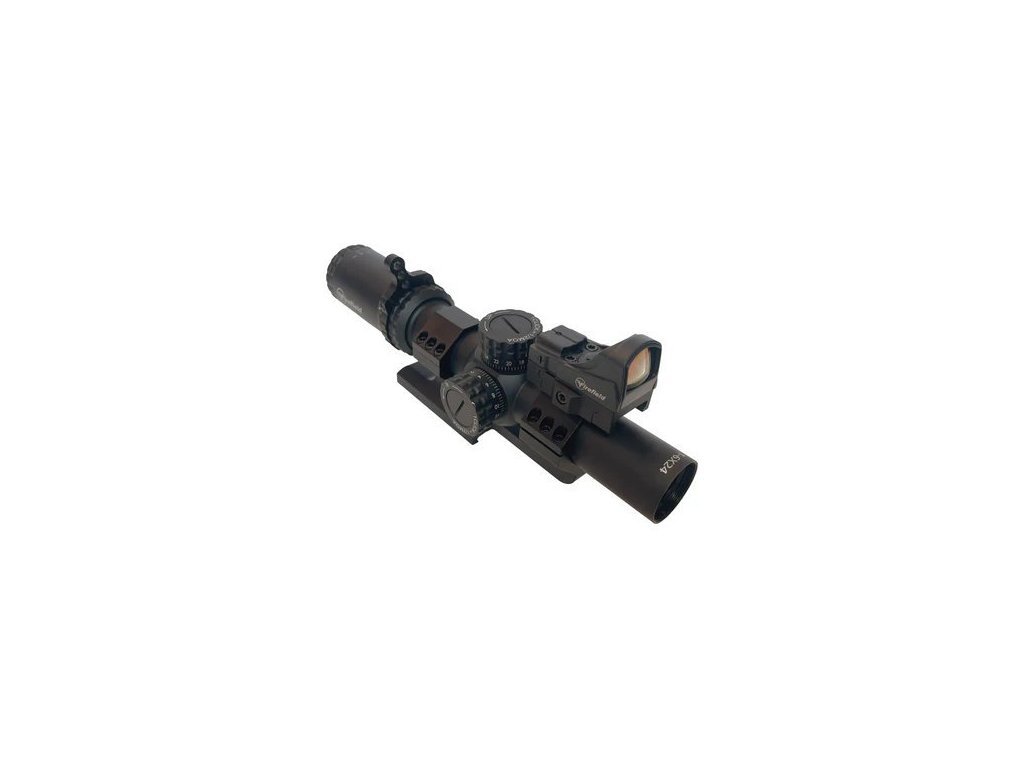 - Kombinace LPVO puškohledu 1–6× a horního kolimátoru Impact Mini