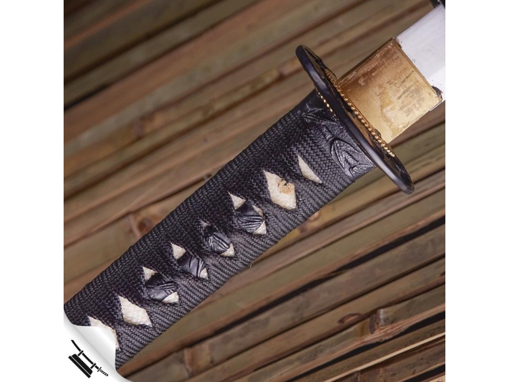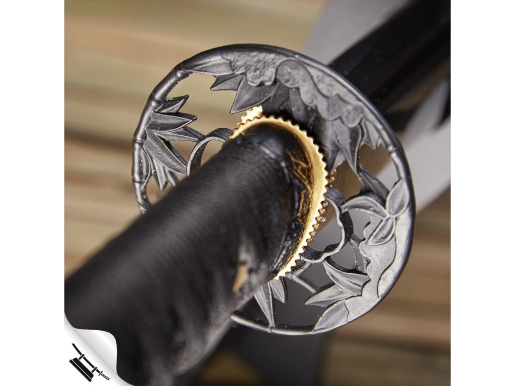Kovaná replika katana Gohan představuje spojení tradiční japonské estetiky a moderního řemeslného zpracování. Čepel z uhlíkové oceli AISI 1045 s konstrukcí Full Tang zajišťuje odolnost potřebnou pro nácvik základních pohybů a sestav bojových umění (kata). Výjimečnost tohoto modelu spočívá v jeho dekorativním provedení – černá lesklá pochva saya nese ručně vyrytý motiv bambusu, který v japonské kultuře symbolizuje sílu a pružnost. Černá mosazná tsuba (záštita) tento přírodní motiv vkusně doplňuje.