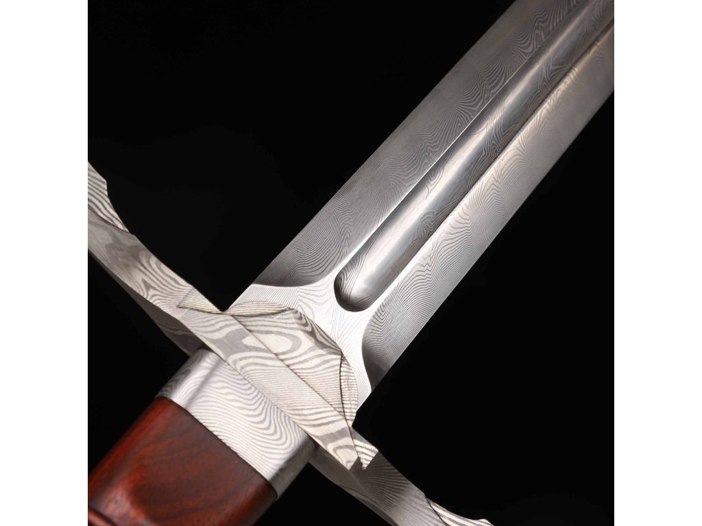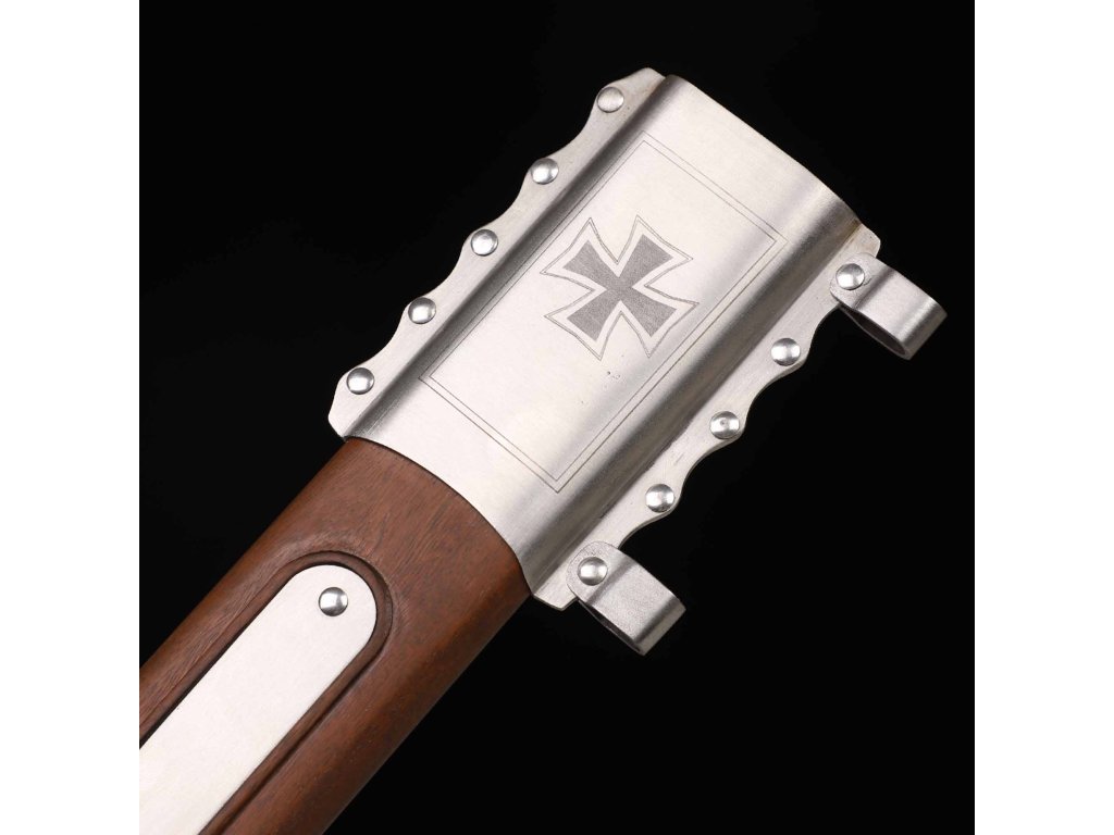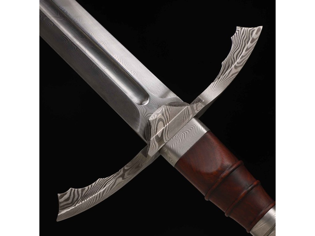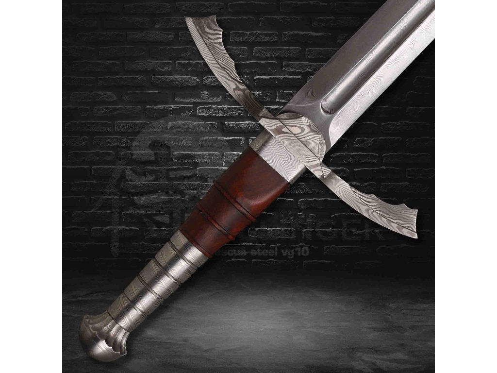Dlouhá, rovná a oboustranně broušená čepel, která je ideální pro sekání i bodání. Pro čepel byla použita velmi kvalitní damašková ocel s výrazným vrstveným vzorem o délce 700 mm. Jílec s lehce zakřivenou damaškovou příčkou, která chrání ruku bojovníka před údery protivníka. Dostatečně dlouhá rukojeť, tak aby ji bylo možné uchopit oběma rukama, což zajistí lepší kontrolu a sílu úderu. Zdobená damašková hlavice skvěle vyvažuje a zakončuje meč. Dřevěná pochva s kováním a zdobením nese křižáckou symboliku. Křižácký meč je ideální dárek, může se stát sběratelským kouskem nebo dekorací, ale zároveň se jedná o zdařilou a plně funkční repliku bojového meče.