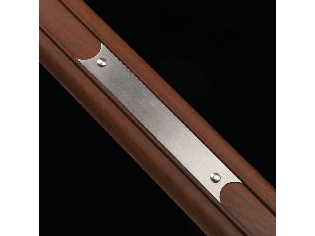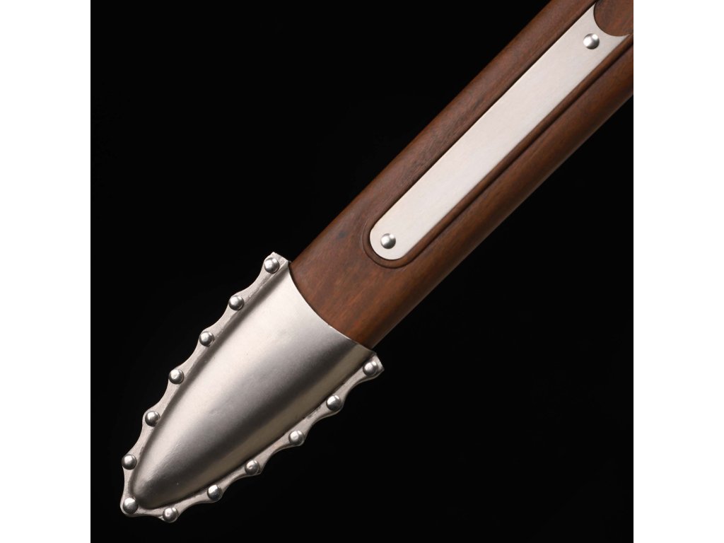Funkční replika meče Ghost of Heaven z damaškové uhlíkové oceli kombinuje historickou symboliku s precizním zpracováním. Dlouhá, rovná čepel o délce 700 mm s charakteristickým damaškovým vzorem je ostřená po obou stranách a umožňuje efektivní sekání i bodání. Damašková záštita chrání ruku, rukojeť pro obouruční úchop zajišťuje stabilitu při úderech a dekorativní hlavice dotváří vyváženost meče. Meč je uložen ve stylové dřevěné pochvě s kováním a zdobením. Tento elegantní meč je skvělou volbou pro sběratele, jako stylová dekorace i pro funkční trénink. Celková délka 895 mm.