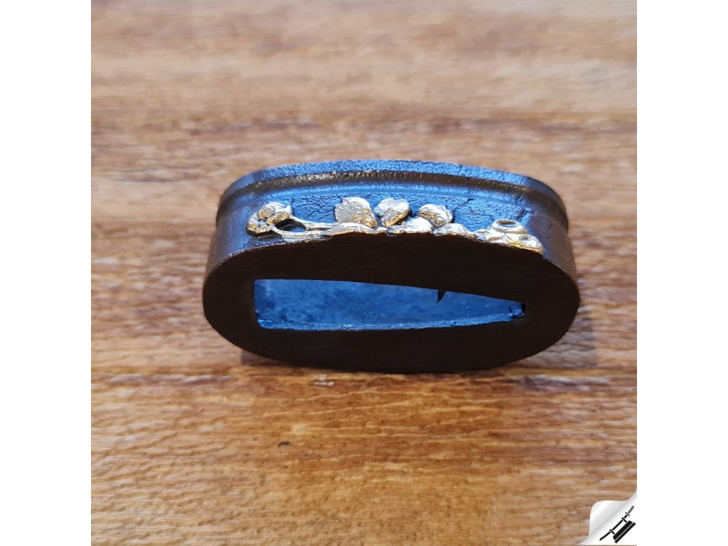 tsuba (záštita): mosazná zdobená – váha 165 g, průměr 70 x 78 mm