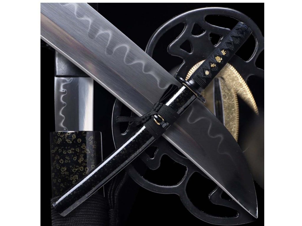 Samurajské tanto Kuro Hebi, ocel T-10, reálný hamon Choji