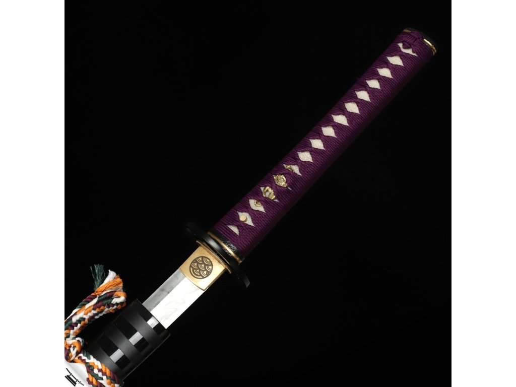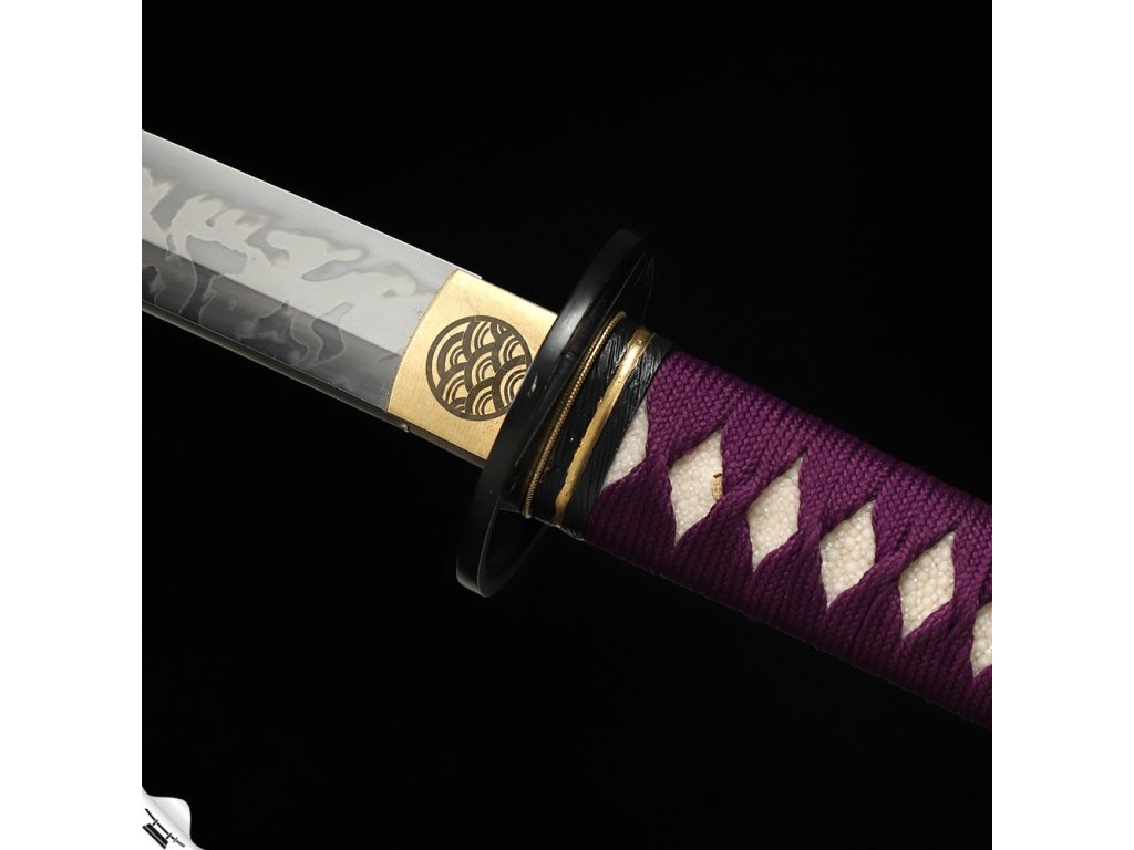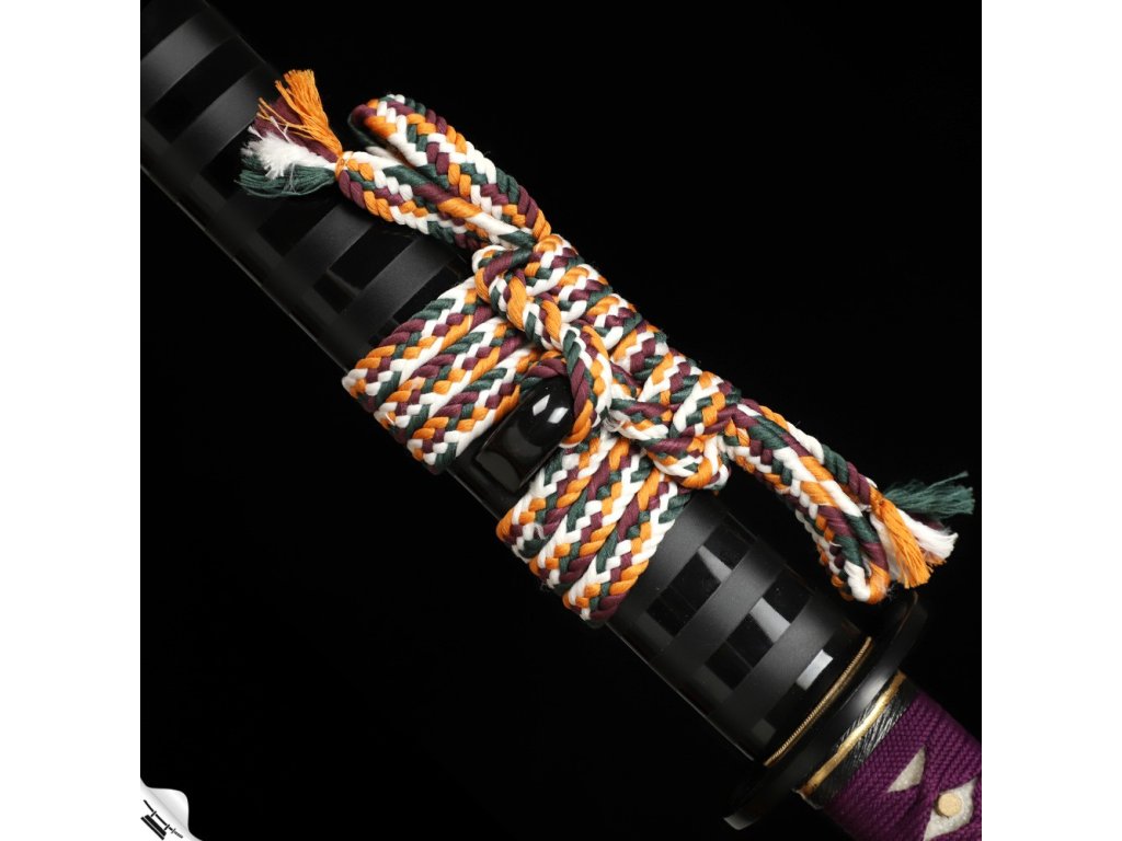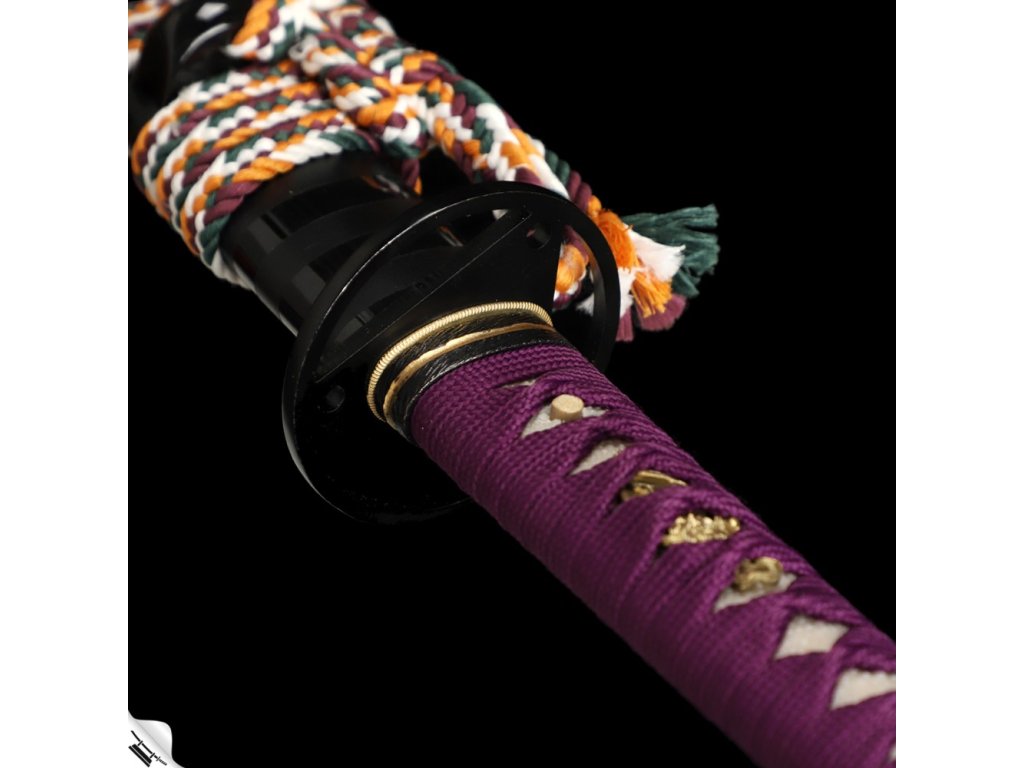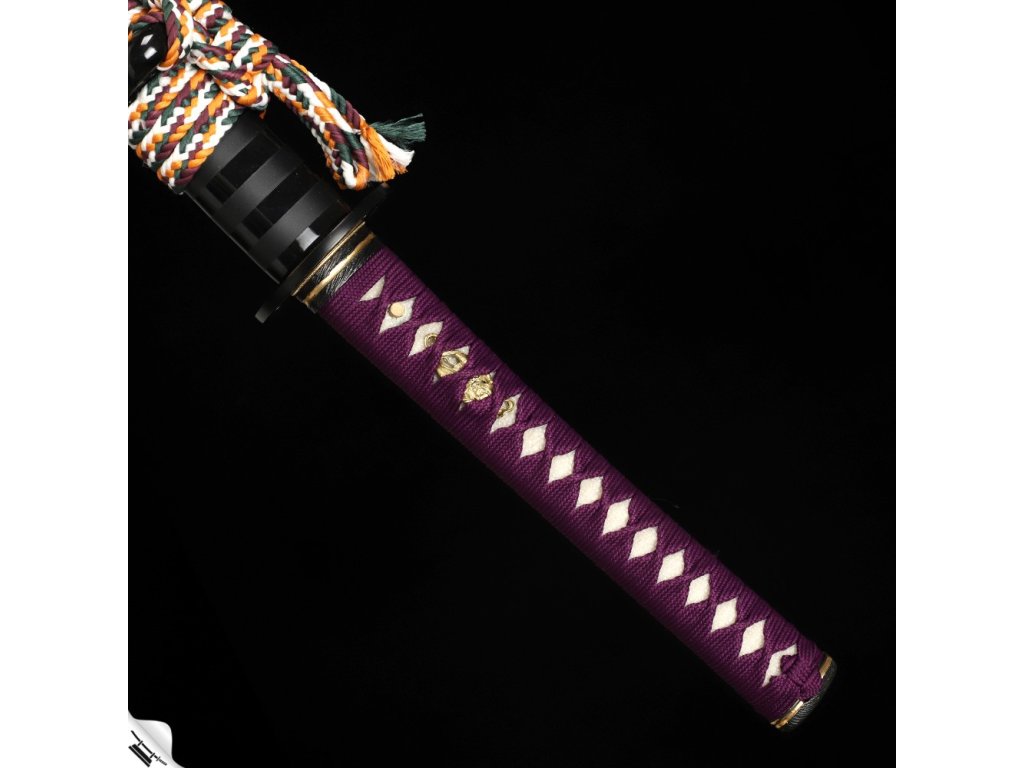 Tsuka: (rukojeť) dřevěné jádro obalené pravou kůží z rejnoka (Samegawa) s fialovým opletem - Ito. Čepel katany je zajištěna dvěma mekugi (bambusové kolíky). Čepel od rukojeti můžete odmontovat vytažením těchto kolíků. Na každé straně Tsuky (rukojeti) je menuki (ornament pod opletem). Měděné zakončení rukojeti (Kashira) s vyrytým zdobením.