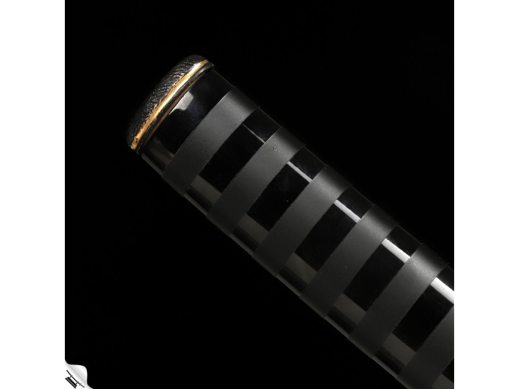 Kovaný japonský meč KATANA s reálným hamonem Hitatsura. Ostrý (broušený) samurajský meč KATANA najde své uplatnění jako dekorace, ale i k aktivnímu nácviku bojového umění. Ocel je parciálně zakalena, má stupeň tvrdosti 58 HRC. Atraktivní a ostrá čepel, dřevěná lakovaná černá saya s proužky plus tsuka (rukojeť), která je potažena pravou rejnočí kůží, to vše dělá tuto katanu velmi zajímavou a žádanou. Katana je uložena v plátěném vaku. Ostří katany zdobí reálný hamon Hitatsura.Firma Dellinger se zříká jakékoliv odpovědnosti za zranění a poškození vzniklá při použití. Schraňujte katanu mimo dosah dětí ! Jakákoliv manipulace se samurajským mečem je na vaší vlastní odpovědnost. Nezapomeňte, že máte ve svých rukou smrtelnou zbraň !