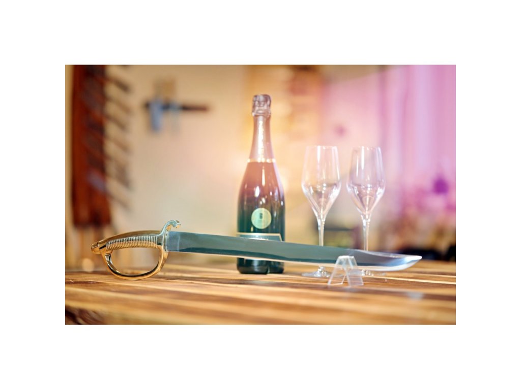 Tato šavle se používá pro tzv. sabrage (sabráž). Tento způsob otevírání lahví proslavil Napoleon Bonaparte. Pro úspěšnou sabráž musí být sekt vychlazený na 3–5 °C. Po odstranění drátěného košíčku a staniolu se šavlí sekne podél švu lahve směrem k hrdlu. Náraz tupého ostří na skleněný nákružek čistě odlomí hrdlo i se špuntem, což vytváří nezapomenutelný zážitek při slavnostních příležitostech.