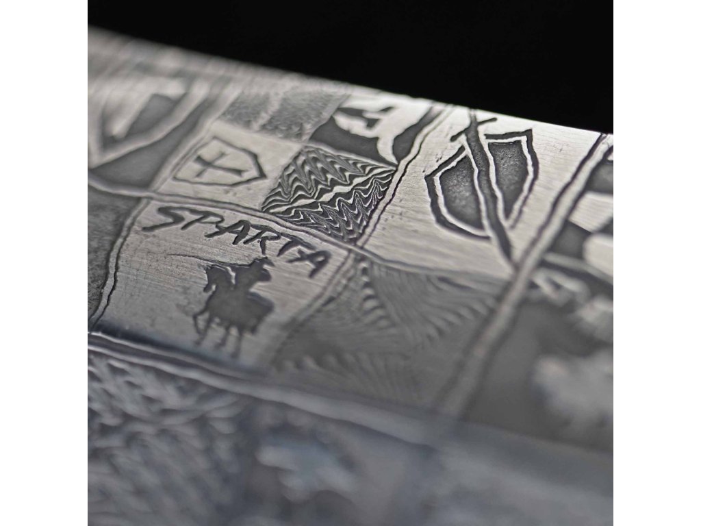 Upozornění Každý nůž je vyroben z přírodních materiálů. Každý kus oceli je originální a nenapodobitelný, proto Váš nůž nemusí vypadat přesně tak jak na fotografii. Nůž, který obdržíte, bude stejně kvalitní a detailně opracovaný, ale může se mírně lišit. |