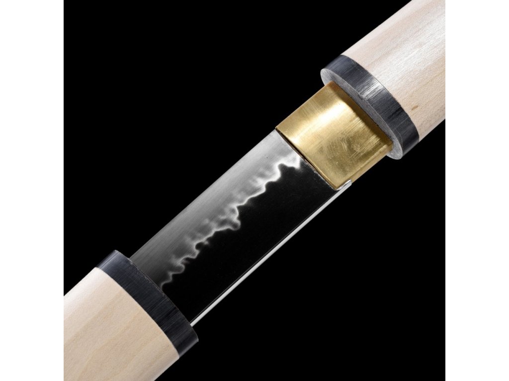 Kovaný japonský meč SHIRASAYA s reálným hamonem Choji. Ostrý (broušený) samurajský meč SHIRASAYA najde své uplatnění jako dekorace, ale i k aktivnímu nácviku bojového umění. Ocel je parciálně zakalena, má stupeň tvrdosti 58 HRC. Atraktivní a ostrá čepel, saya i rukojeť z tvrdého magnóliového dřeva, to vše dělá tuto shirasayu velmi zajímavou a žádanou. Ostří shirasayy zdobí reálný hamon Choji. Perfektně se hodí do páru s wakizashi. Firma Dellinger se zříká jakékoliv odpovědnosti za zranění a poškození vzniklá při použití. Schraňujte shirasayu mimo dosah dětí ! Jakákoliv manipulace se samurajským mečem je na vaší vlastní odpovědnost. Nezapomeňte, že máte ve svých rukou smrtelnou zbraň !