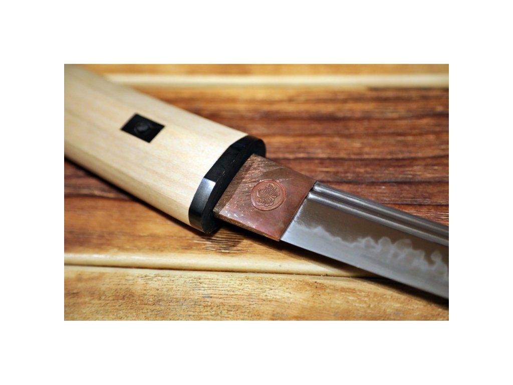 Shirasaya & Nagasa 2,42 Shaku & Japanese Sword & ocel Oroshigane & reálný hamon Choji & dvojitý žlábek Bo-Hi & Diamond Shaped Yokote & tvrdost ostří (hasaki) 58 HRC
