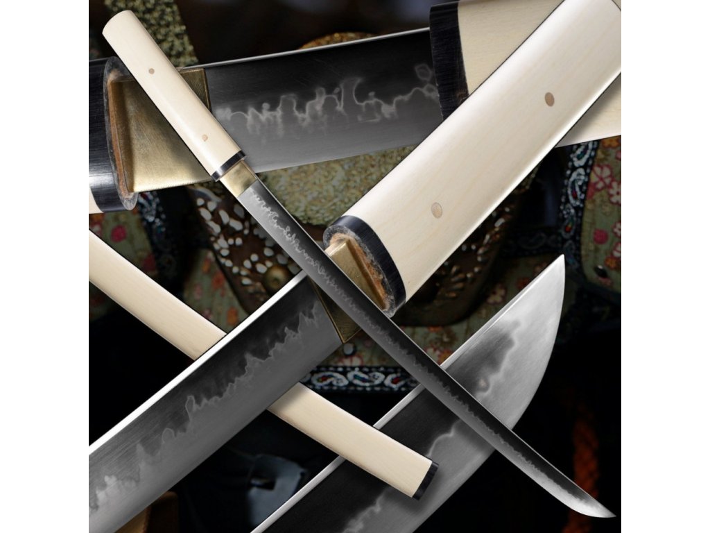 SHIRASAYA KUMO Japanese Wakizashi Sword T-10 Steel, Real Choji Hamon