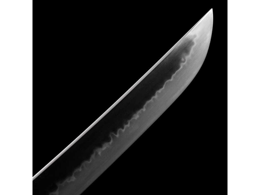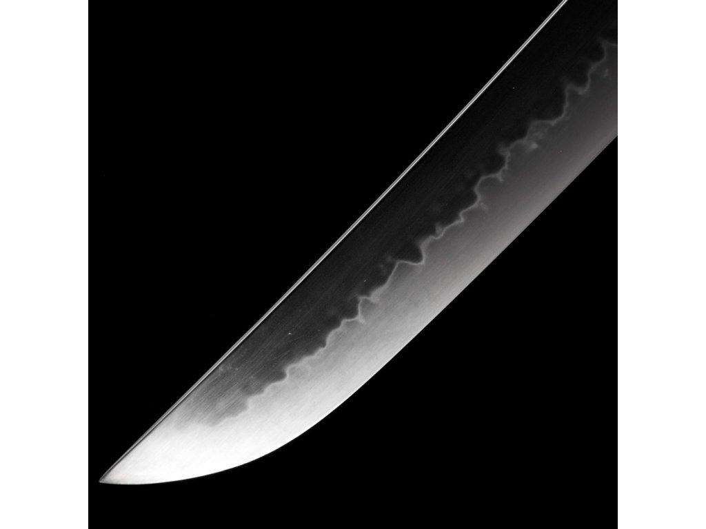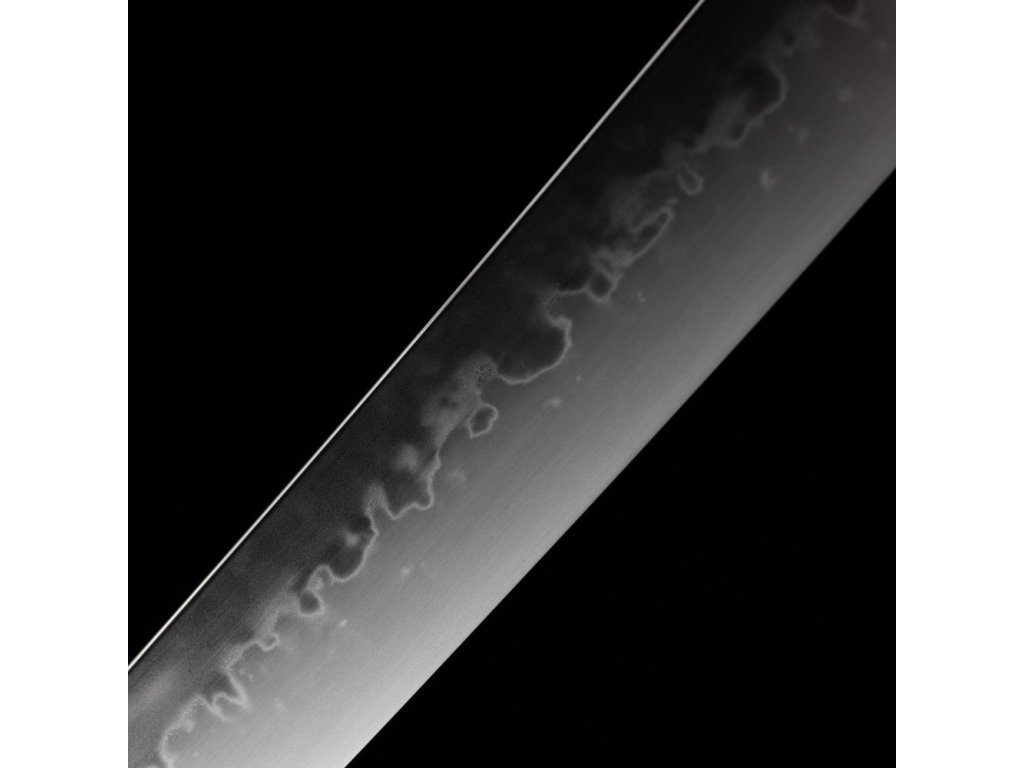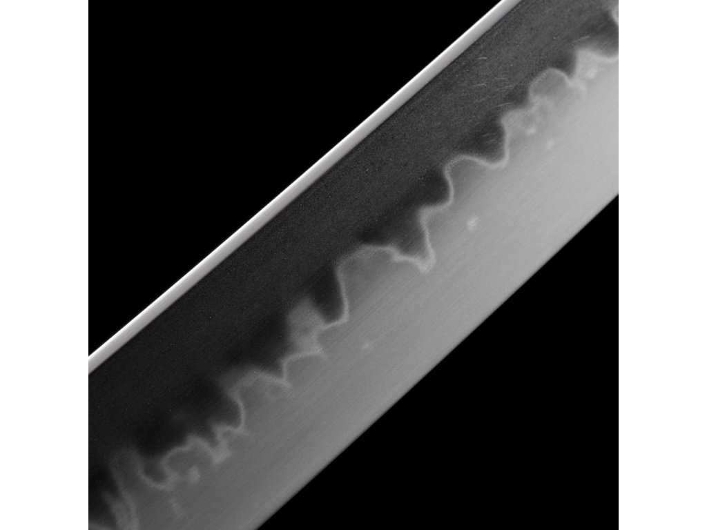 Výrazný reálný Choji hamon je tvořen dle dávných tradičních metod, které vychází z mnohaletých zkušeností kovářského mistra. Jedná se o špičkovou repliku samurajského meče, která je vhodná k sekovým zkouškám a lze ji rozložit na jednotlivé části. Tato čepel byla vyzkoušena a testována tak, aby odstranila vše co jí stojí v cestě ! Sori (zakřivení čepele) je speciálně navrženo tak, aby bylo dosaženo co možná nejjemnějších a nejčistších řezů. Uhlíková ocel T-10 má působivou tvrdost HRC 58 - perfektní kombinace této tvrdosti je podtrženo zakřivením čepele Sori, které umožňuje snadné přeseknutí tatami, slaměné rohože, nebo bambusu pro tameshigiri. Full tang konstrukce tohoto wakizashi výrazně zvyšuje sílu meče. Hrot čepele je tvarovaný shinogi-zukuri. Toto wakizashi je vhodné na použití v praxi, firma Dellinger se však zříká jakékoliv odpovědnosti za zranění a poškození vzniklá při použití. Schraňujte meč mimo dosah dětí ! Jakákoliv manipulace se samurajským mečem je na vaší vlastní odpovědnost. Nezapomeňte, že máte ve svých rukou smrtelnou zbraň !