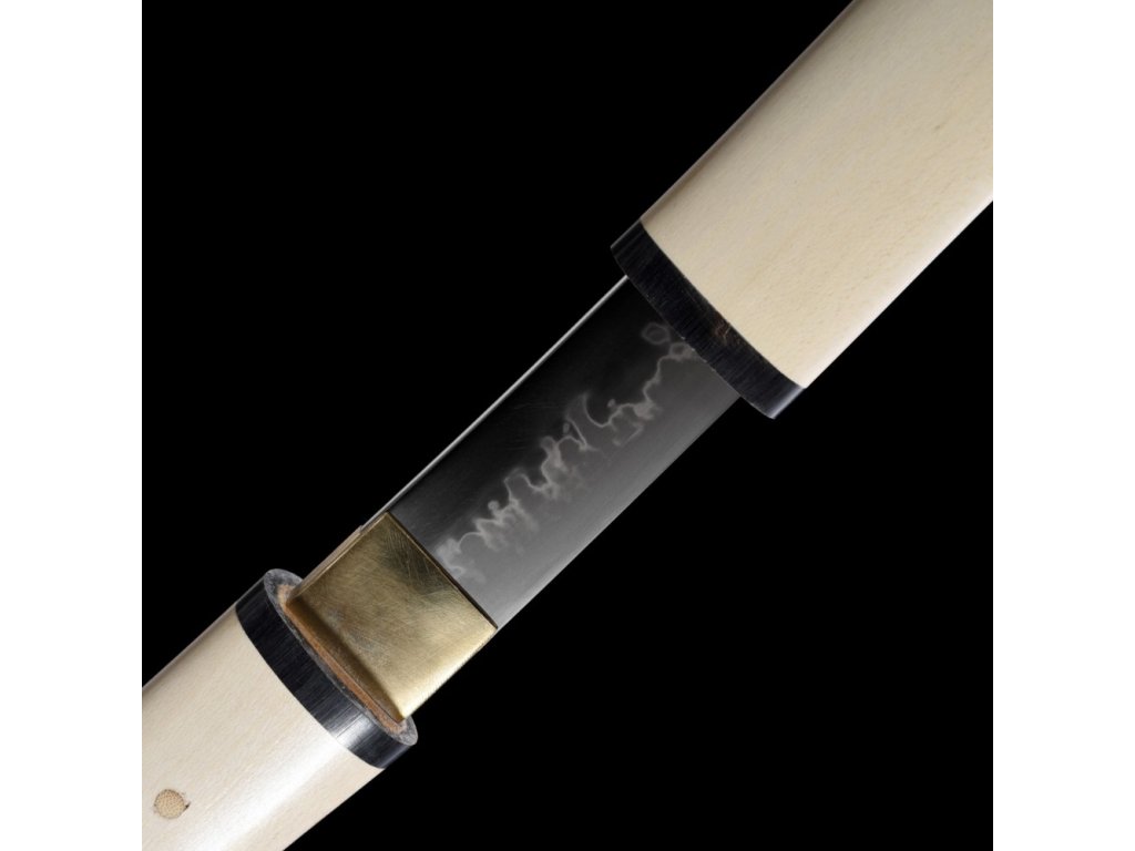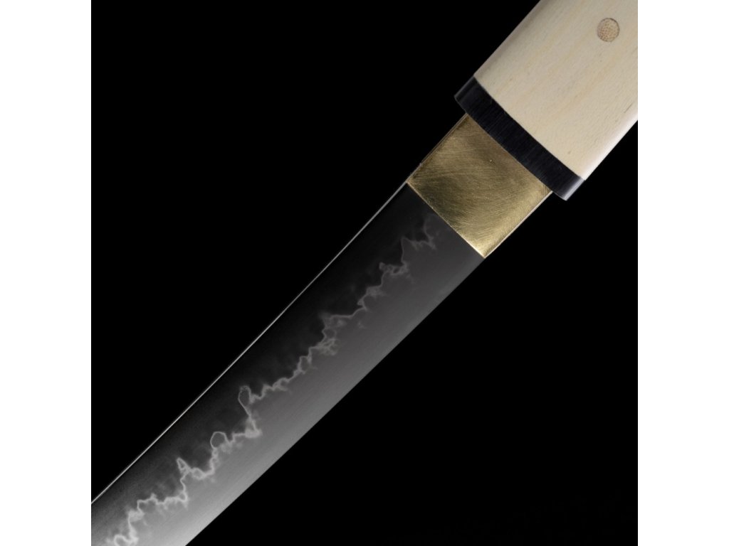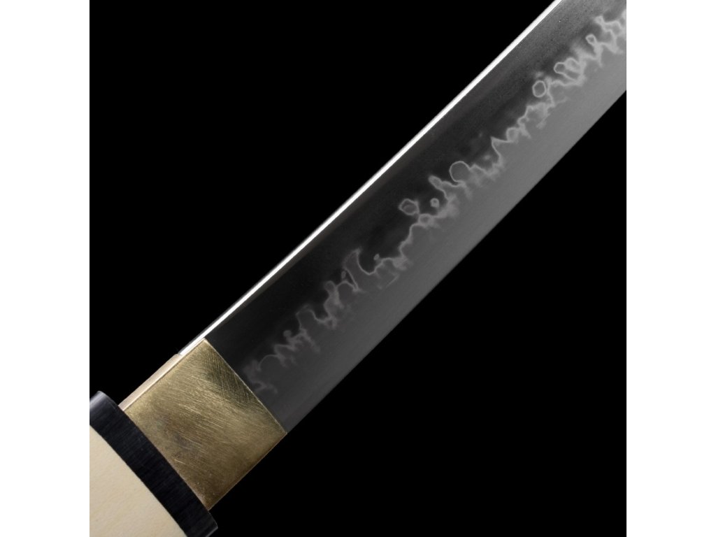 Shirasaya KUMO & Japanese Wakizashi Sword & T-10 Steel Clay Tempered & Real Choji Hamon
