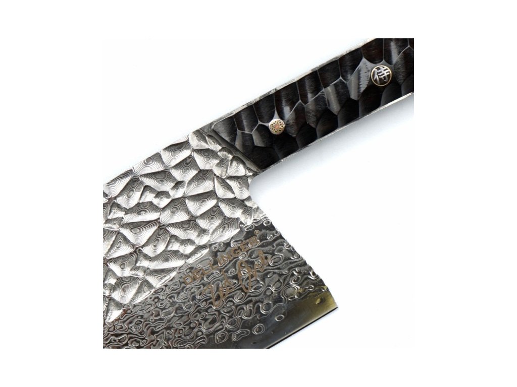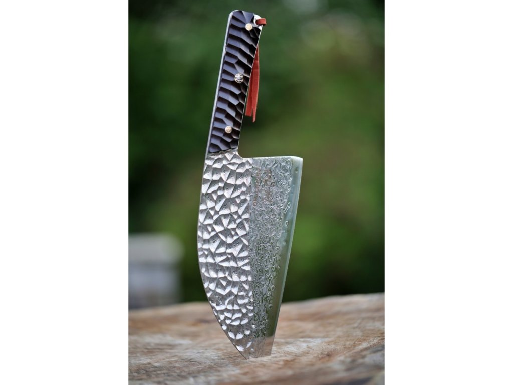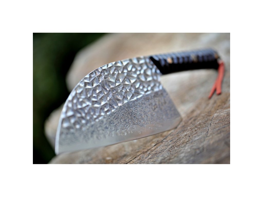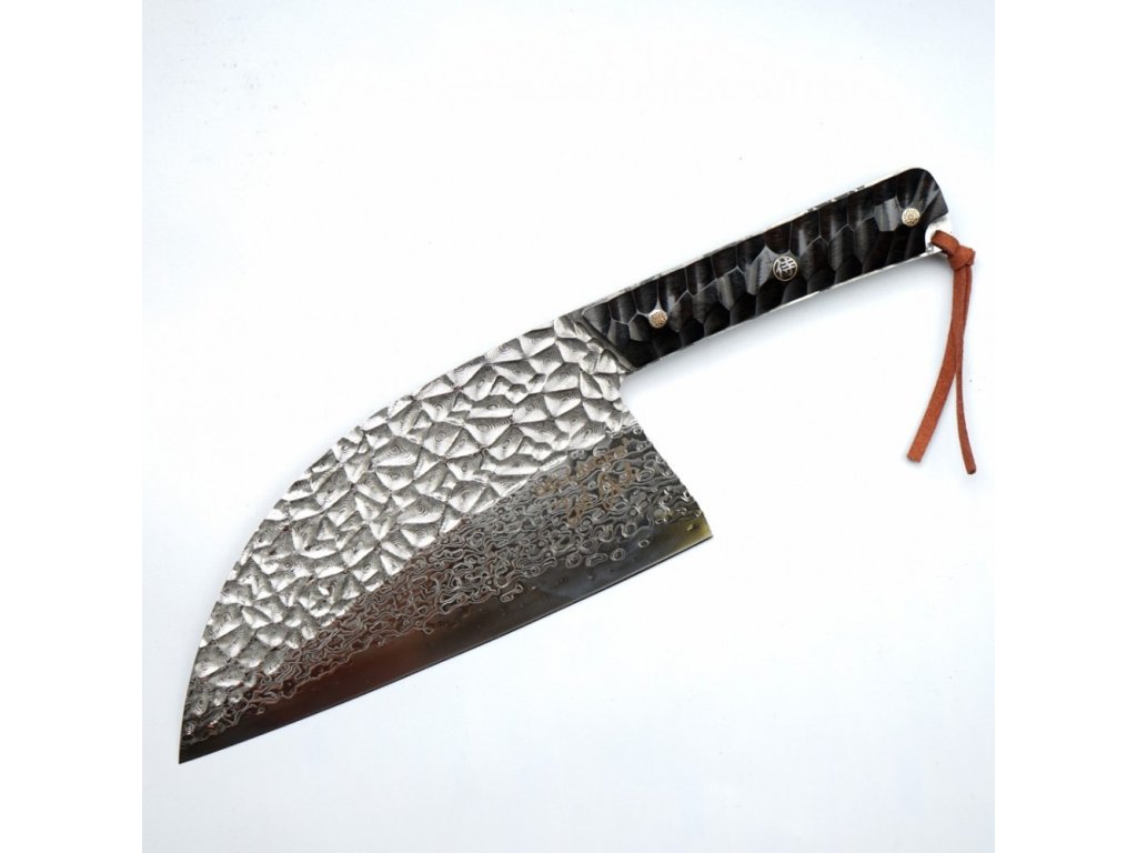 Kdo potřebuje mnoho nástrojů k přípravě jídla ? Vy už ne! S tímto fantastickým nožem zvládnete téměř vše. Sekání, krájení, vykosťování, čištění masa a zeleniny - nic pro tento nůž není problém. Teď můžeme žít společně s naší matkou přírodou. Tento nůž je ručně zpracovaný z japonské oceli VG-10. Po přesném a pečlivém vytvrzení, temperování a žíhání dosahuje tvrdosti Rockwell 60-62 (HRC). Jeho ostří jen tak někdo, nebo něco nepoškodí. Nádherná rukojeť tohoto nože je ručně tvarována z kusu exotického ebenového dřeva. Rukojeť je ozdobena a zpevněna 3 okrasnými nýty. Střední nýt je ozdoben japonským znakem samuraje.
