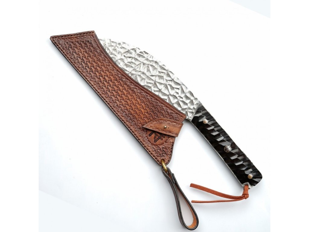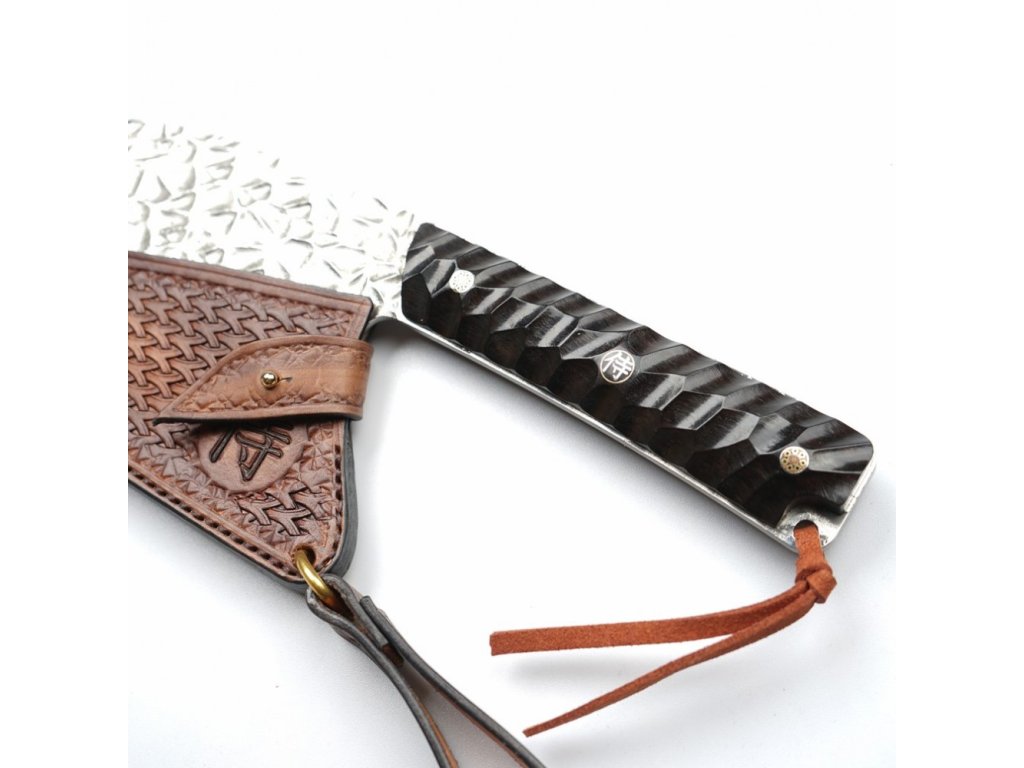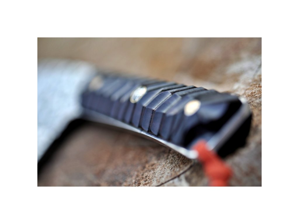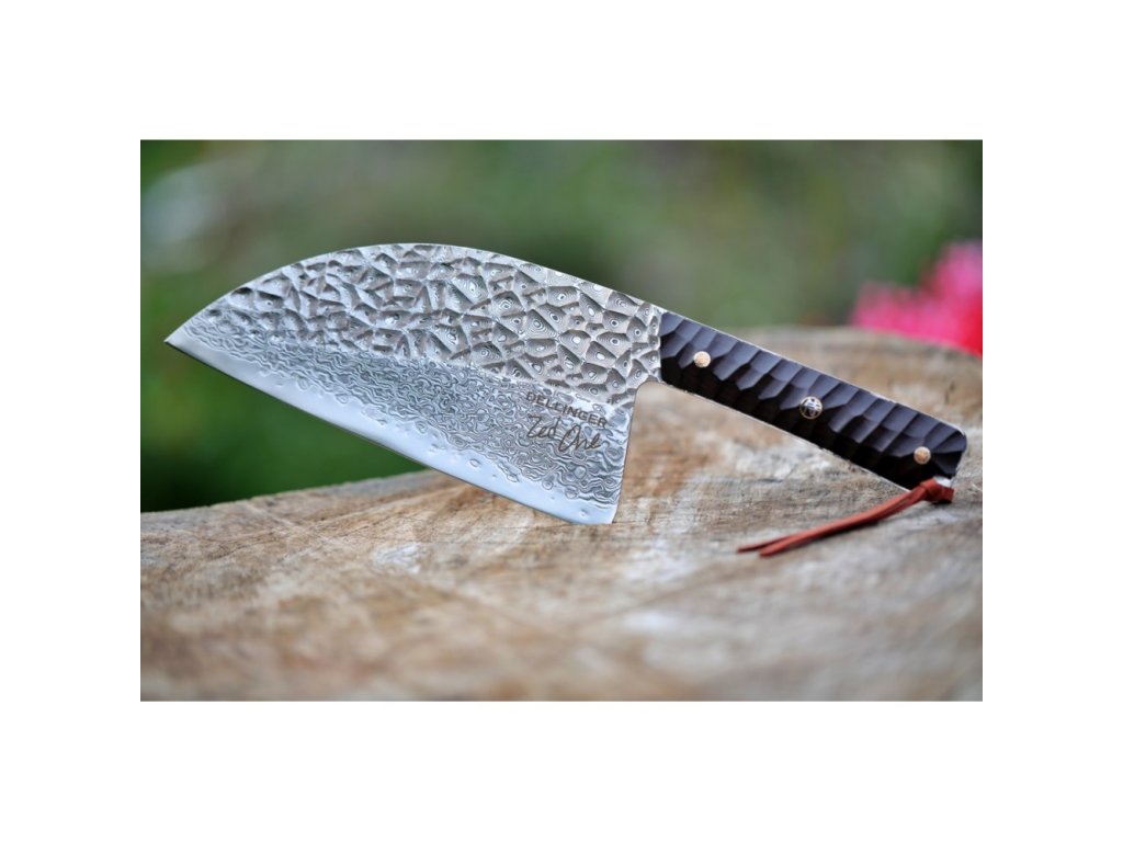 Kdo potřebuje mnoho nástrojů k přípravě jídla ? Vy už ne! S tímto fantastickým nožem zvládnete téměř vše. Sekání, krájení, vykosťování, čištění masa a zeleniny - nic pro tento nůž není problém. Teď můžeme žít společně s naší matkou přírodou. Tento nůž je ručně zpracovaný z japonské oceli VG-10. Po přesném a pečlivém vytvrzení, temperování a žíhání dosahuje tvrdosti Rockwell 60-62 (HRC). Jeho ostří jen tak někdo, nebo něco nepoškodí. Nádherná rukojeť tohoto nože je ručně tvarována z kusu exotického ebenového dřeva. Rukojeť je ozdobena a zpevněna 3 okrasnými nýty. Střední nýt je ozdoben japonským znakem samuraje.