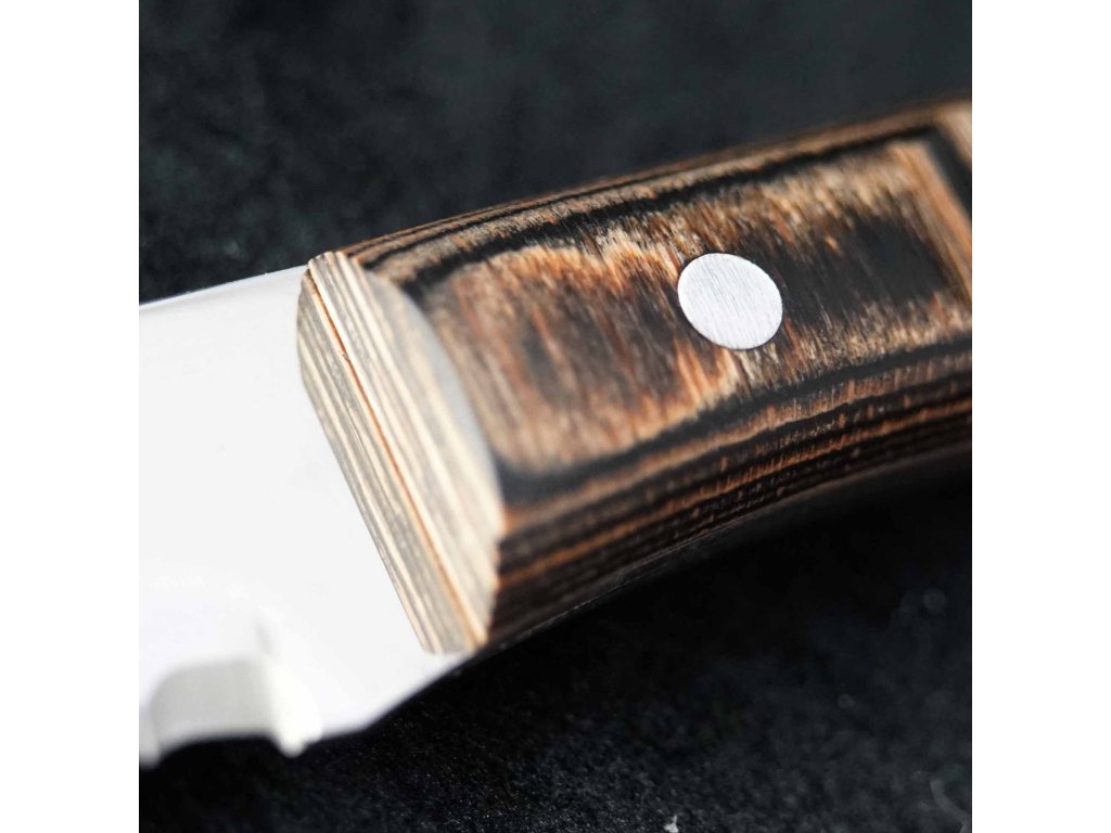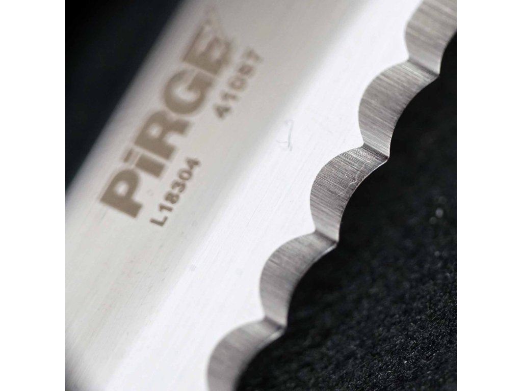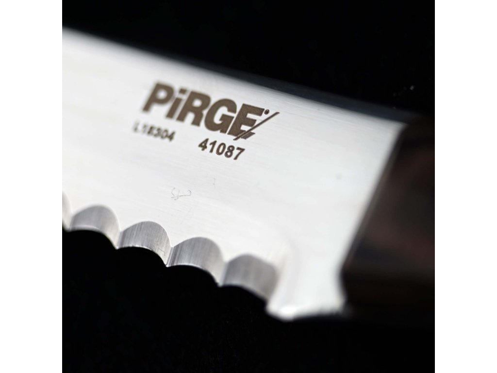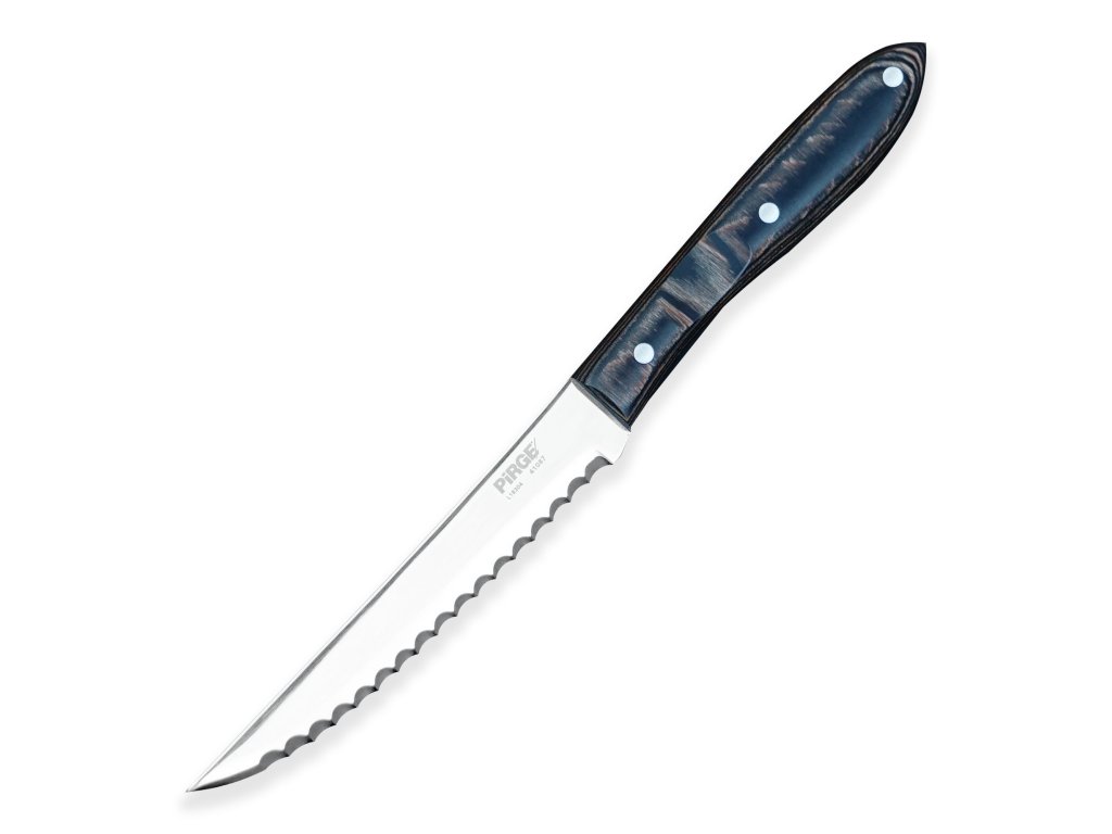 Stylový steakový nůž Pirge vyrobený z německé nerezové oceli 1.4116. Ergonomická a hygienická rukojeť je vyrobena z kompozitního materiálu, design imitace dřeva. Délka ostří 120 mm.