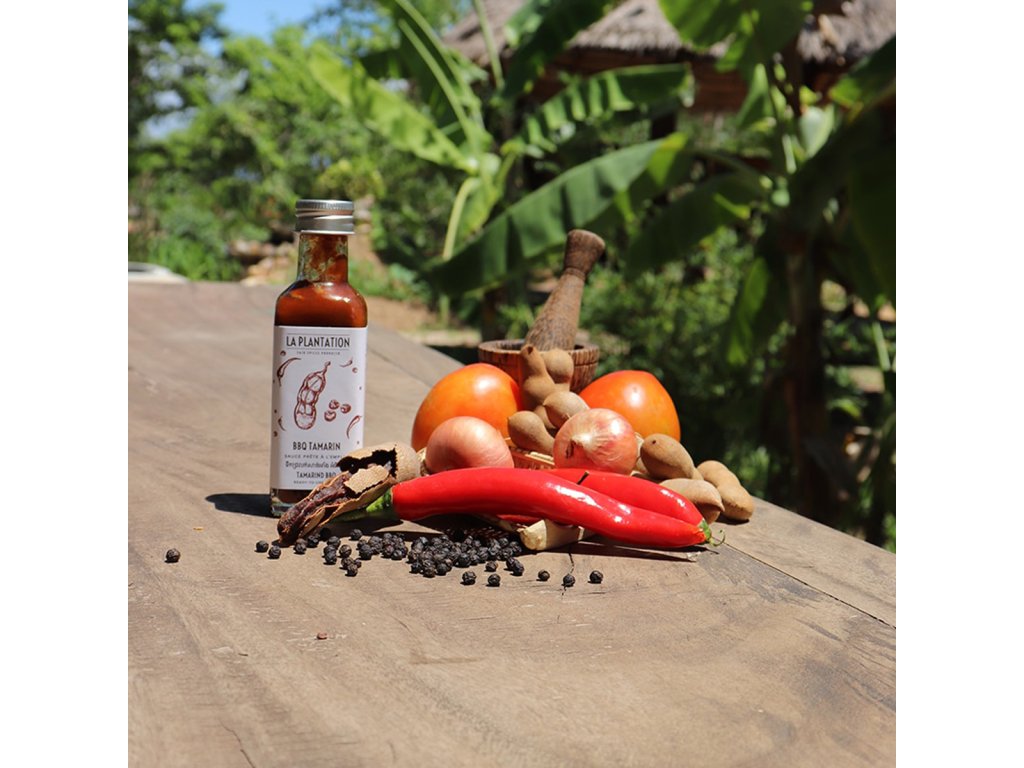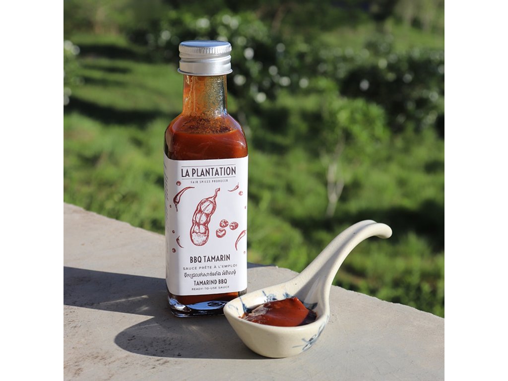 Omáčka BBQ Tamarind z La Plantation obsahuje plody tamarindu - stromu který původně pochází z Afriky, v Kambodži se však díky místnímu klimatu skvěle zabydlel. Nyní je často používán v místní kuchyni, naše omáčka je vyráběna z čerstvého tamarindu - nikoliv často používané pasty. To propůjčuje omáčce skvělou, originální a svěží chuť! Ta je podpořena zauzeným chilli a zauzeným Kampotským pepřem.