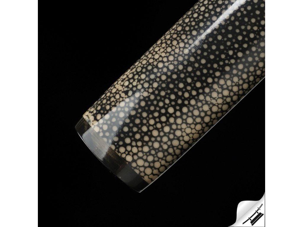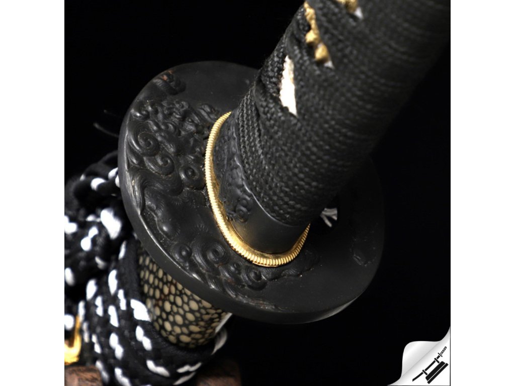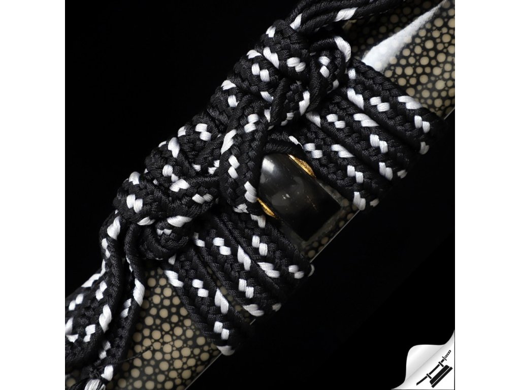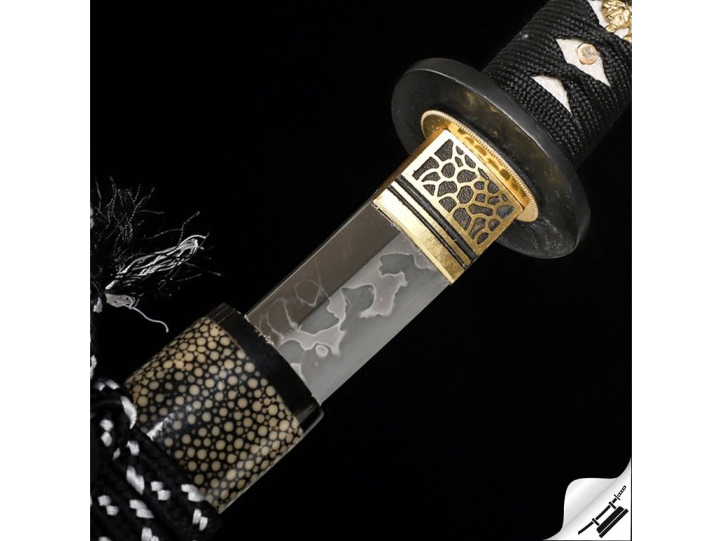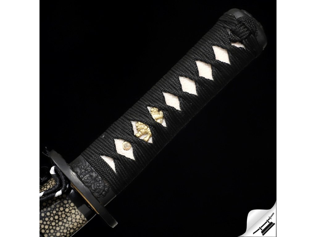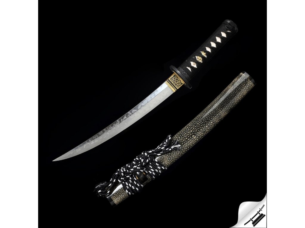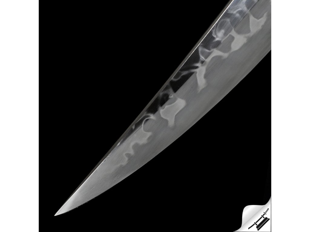 Ostré kované tanto Juken je ideálním kusem pro sběratele nebo jako precizní nástroj k aktivnímu nácviku bojového umění. Čepel je vyrobená z uhlíkové oceli T-10 je precizně zakalená tak, aby na ní vznikl výrazný a nepravidelný hamon Hitatsura, typický svými rozsypanými ostrovy kalení po celé ploše čepele. Jde o jeden z nejnáročnějších hamonů na výrobu – každý kus je díky němu originál. Ocel má stupeň tvrdosti 58 HRC. Uhlíková ocel T-10 je velmi pevná a skvěle drží ostrost. Rukojeť s rejnočí kůží, černým opletem a menuki na obou stranách. Lesklá saya potažená broušenou a lakovanou rejnočí kůží, s černobílým omotem sageo. Koiguchi, Kojiri a Kurigata z G-10. Firma Dellinger se zříká jakékoliv odpovědnosti za zranění a poškození vzniklá při použití. Schraňujte meč mimo dosah dětí! Jakákoliv manipulace se samurajským mečem je na vaší vlastní odpovědnost. Nezapomeňte, že máte ve svých rukou smrtelnou zbraň!