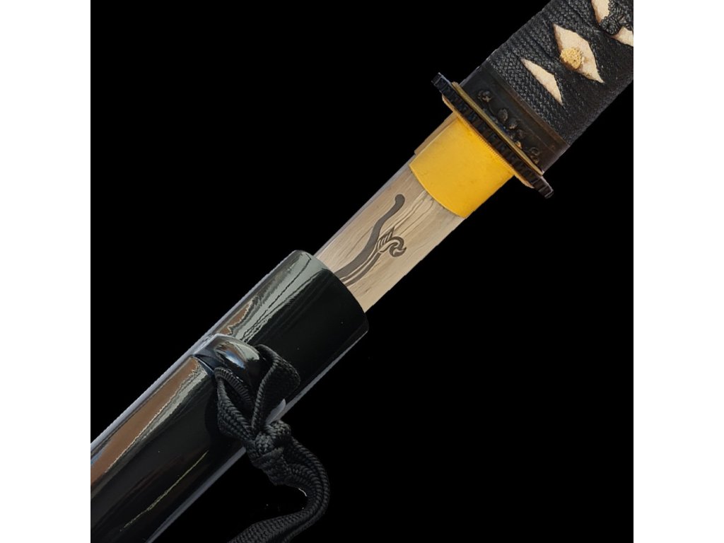 Tanto Mijagi & Nagasa 0,69 Shaku & Japanese Sword & překládaná AISI 1045 carbon steel & pískovaná kresba draka & leštěná imitace Hamonu & tvrdost ostří (hasaki) 48 HRC