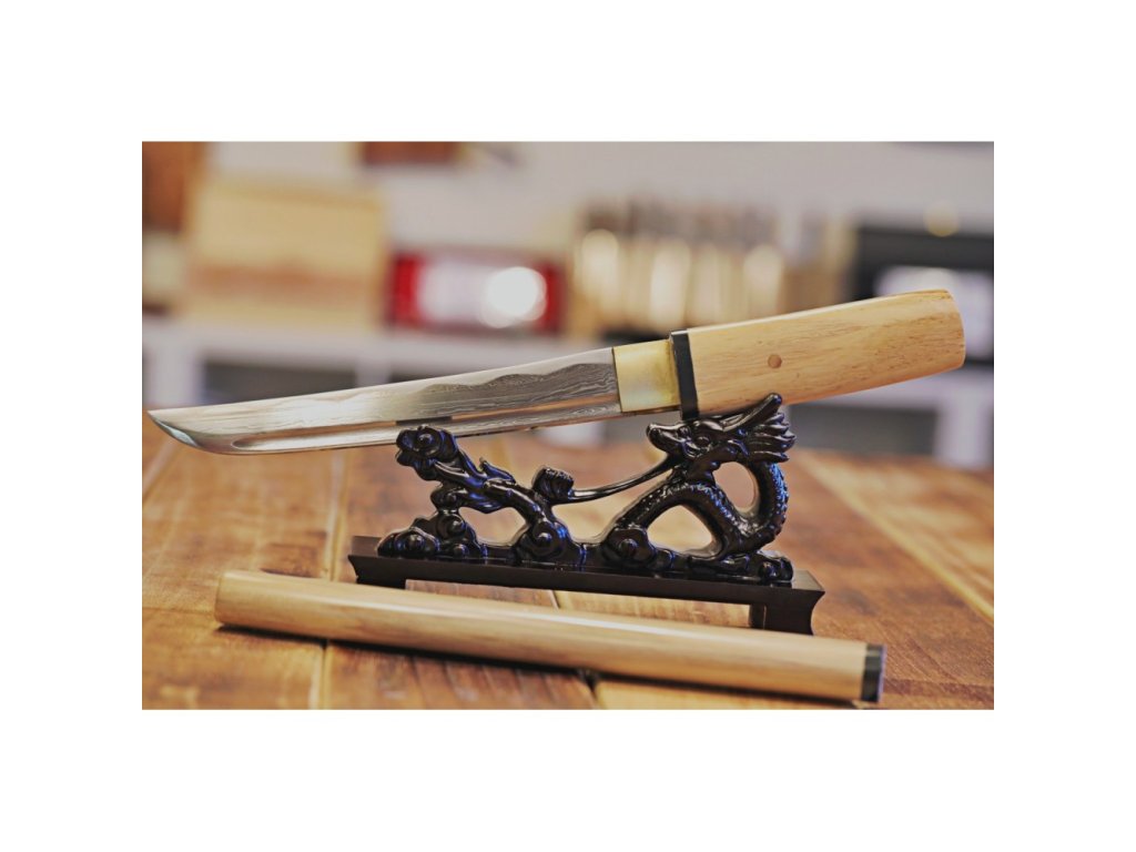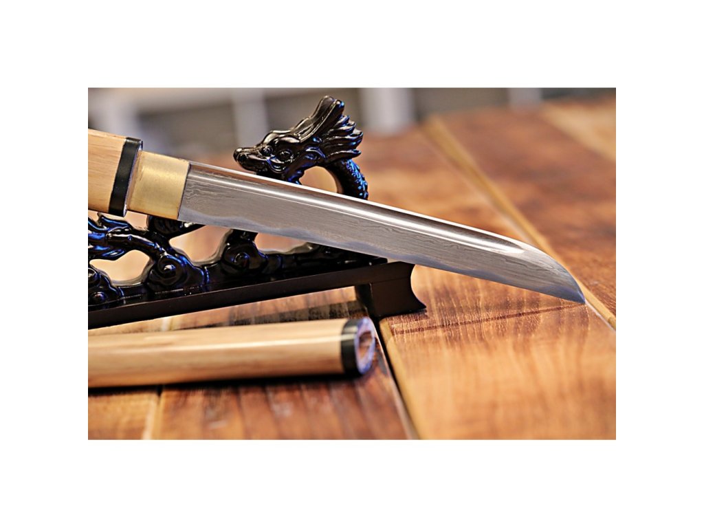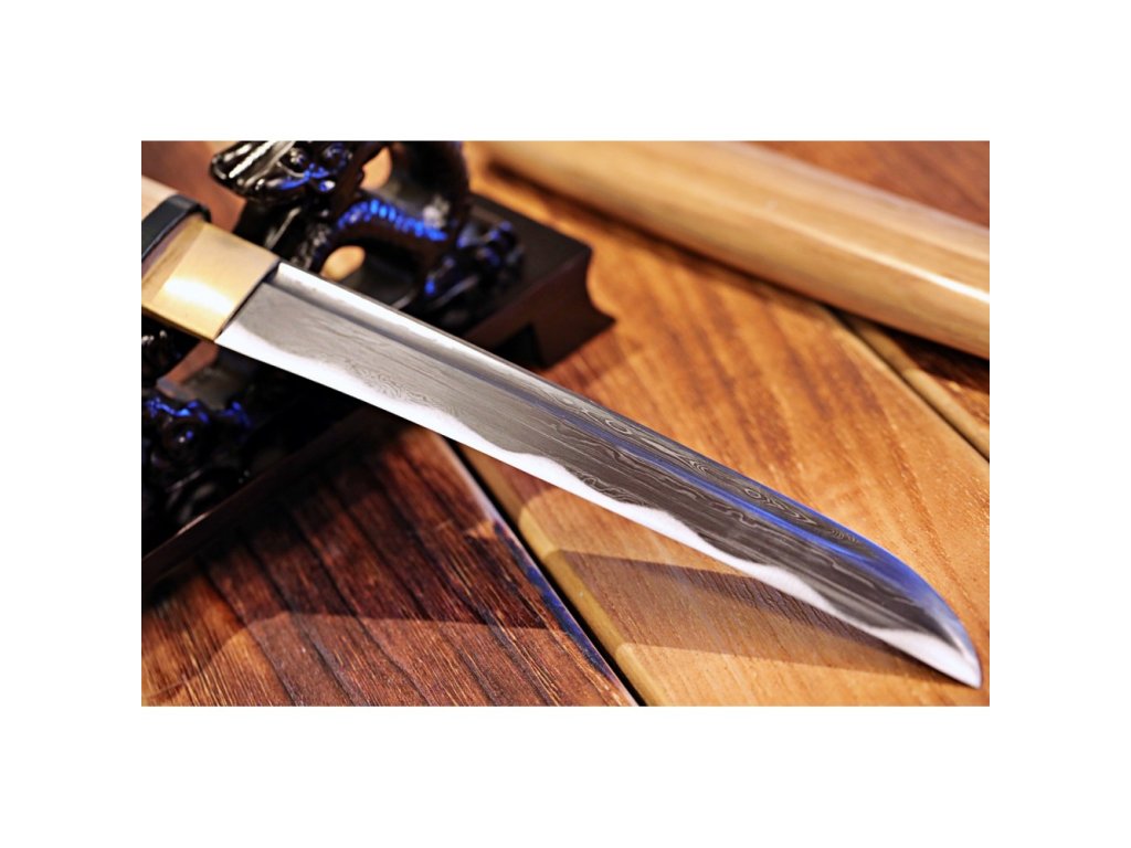 Tanto shira saya Kagami & Nagasa 0,69 Shaku & Japanese Sword & překládaná AISI 1045 carbon steel & leštěná imitace hamonu & žlábek Bo-Hi & tvrdost ostří (hasaki) 48 HRC