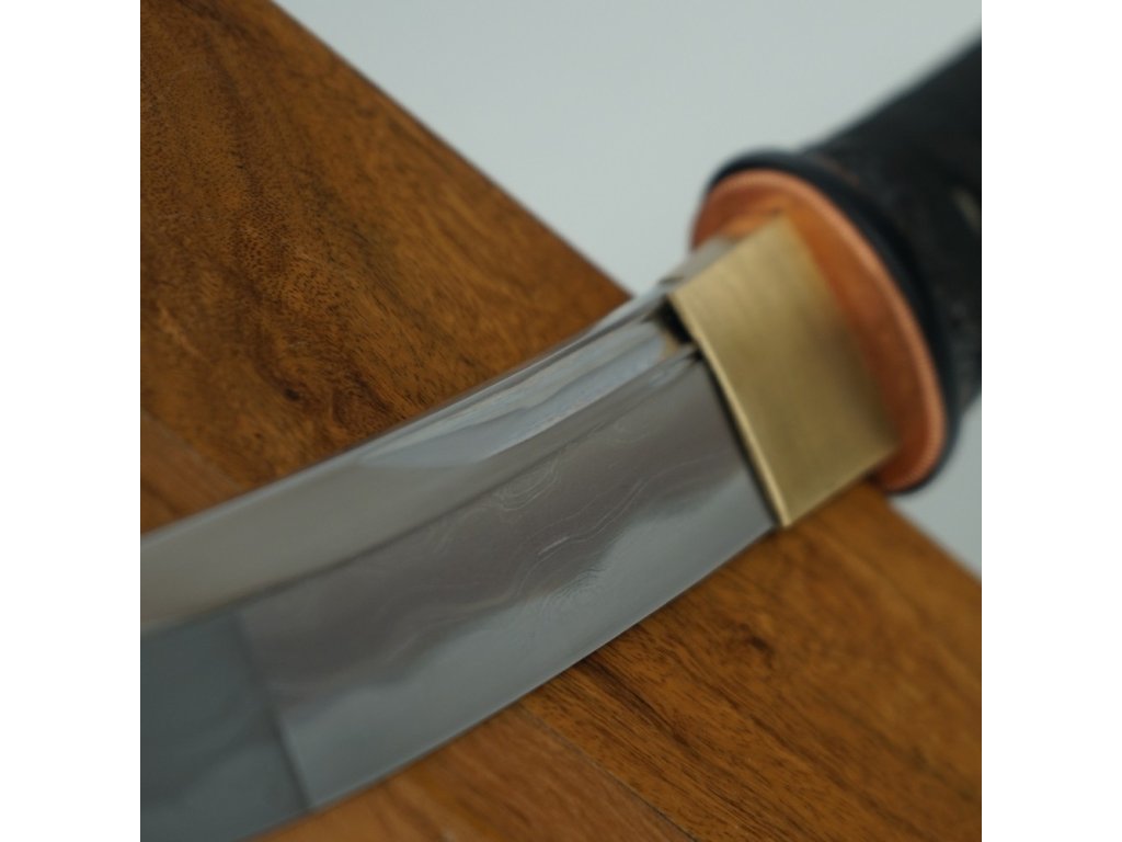 Kované ostré tanto Tentōchū najde své uplatnění k aktivnímu nácviku bojového umění nebo jako špičkový sběratelský kus. Čepel je vyrobená z uhlíkové oceli Tamahagane, stupeň tvrdosti 59 HRC. Čepel má skutečný hamon Notare, jemně vlnící se kalící linii vzniklou tradičním diferenciálním kalením. Notare hamon je zde dobře viditelný díky vysokému stupni leštění. Linie je plynulá, bez ostrých vrcholů, typická pro kvalitní, kontrolovanou tepelnou úpravu. Na čepeli je jasně vyznačené yokote, které odděluje tělo čepele od hrotu. Jedná se o moderní, čistě broušené kaku-yokote. Kissaki začíná přesně v místě, kde se linie yokote láme. Delší hrot, s plynulejším náběhem, což odpovídá prodlouženému chu-kissaki. Plochy hrotu jsou rovnoměrně vyleštěny a zachovávají čistý symetrický tvar. Tanto má na čepeli dva krátké žlábky (bo-hi), umístěné těsně pod sebou v horní třetině čepele směrem od habaki. Tento typ dvojitého bo-hi se používá pro snížení hmotnosti přední části čepele a zároveň jako estetický prvek inspirovaný staršími japonskými formami. Matná černá saya s jemným rozstřikem, zaobleným koncem a černým hedvábným opletem sageo. Koiguchi a Kurigata s leštěného bůvolího rohu. Firma Dellinger se zříká jakékoliv odpovědnosti za zranění a poškození vzniklá při použití. Schraňujte meč mimo dosah dětí! Jakákoliv manipulace se samurajským mečem je na vaší vlastní odpovědnost. Nezapomeňte, že máte ve svých rukou smrtelnou zbraň!