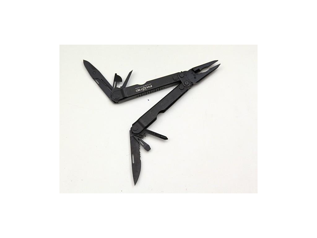 Velmi kvalitně zpracovaný MULTI TOOL Fox Military Design vyráběný pro firmu SOG, KLeště, křížový i plochý šroubovák, nůžky, bodec, otvíráky, klasická čepel o délce 6.5cm, měřítko. Rovnoměrné otevírání přes ozubený převod. Hmotnost 145g, opaskové nylonové pouzdro.