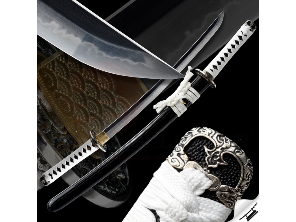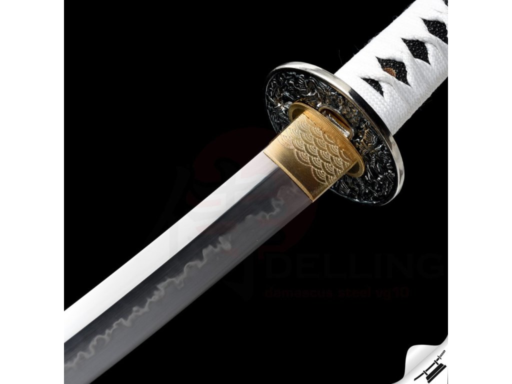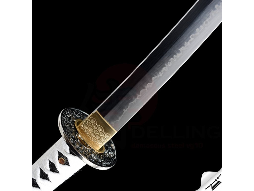 Výrazný reálný Choji hamon je tvořen dle dávných tradičních metod, které vychází z mnohaletých zkušeností kovářského mistra, který výrobou této nádherné zbraně strávil několik dnů. Vše na tomto meči je individuálně zhotoveno, včetně saye a habaki, jsou použity nejkvalitnější komponenty, včetně špičkového laku na sayu, japonského hedvábí a skutečné rejnočí kůže nejvyšší kvality. Jedná se o špičkovou repliku samurajského meče, která je vhodná k sekovým zkouškám a lze ji rozložit na jednotlivé části. Tato čepel byla vyzkoušena a testována tak, aby odstranila vše co jí stojí v cestě ! Sori (zakřivení čepele) je speciálně navrženo tak, aby bylo dosaženo co možná nejjemnějších a nejčistších řezů. To vše v kombinaci s výběrem tradičního kovaného Koshirae zaručuje, že získáte to nejlepší z hlediska vzhledu i funkčnosti. Uhlíková ocel T-10 má působivou tvrdost HRC 58 - perfektní kombinace této tvrdosti je podtrženo zakřivením čepele Sori, které umožňuje snadné přeseknutí tatami, slaměné rohože, nebo bambusu pro tameshigiri. Full tang konstrukce této katany výrazně zvyšuje sílu meče. Čepel je typu shinogi-zukuri, tento typ čepele se vyrábí od 10.století našeho letopočtu. Hrot meče ko kissaki se skutečným Diamond-Shaped Yokote, které je velmi dobře definováno tím, že hamon prochází po celé délce přes Boshi. Yokote je velmi důležité pro strukturální integritu špičky meče. Pomáhá absorbovat otřes, rozptýlí sílu a přispívá k stabilitě a síle meče při tzv. sekořezu. Tato katana (samurajský meč) je vhodná na použití v praxi, firma Dellinger se však zříká jakékoliv odpovědnosti za zranění a poškození vzniklá při použití. Schraňujte mimo dosah dětí ! Jakákoliv manipulace se samurajským mečem je na vaší vlastní odpovědnost. Nezapomeňte, že máte ve svých rukou smrtící zbraň !