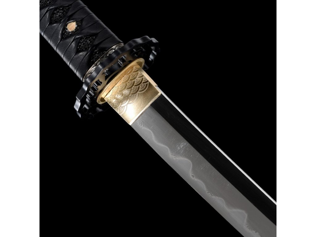 Katana Uchiwake & Japanese Sword & Yokote & překládaná (damascus) ocel AISI 1095 a AISI 1060 & Real Choji Hamon