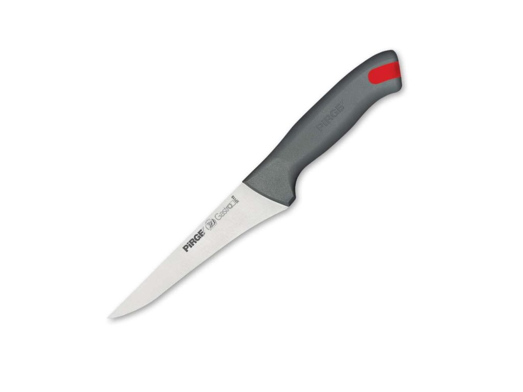 Nože ze série Pirge GASTRO z německé nerezové oceli 1.4116 jsou určeny jak pro profesionální Gastro provozy, tak i k běžnému domácí použití. Tvrdost ostří dosahuje 56-58 HRC a je broušeno pod úhlem 20 stupňů. Síla ostří se pohybuje v závislosti na typu nože a velikosti v rozmezí 1,8 - 2,5 mm. Tvary nožů byly navrženy profesionály s mnohaletými zkušenostmi. Krájení, plátkování, čištění masa, ovoce a zeleniny – nic nebude pro tyto nože problém. Nože Pirge GASTRO jsou ideální pro gastro-provozovny a restaurační kuchyně. Ke každému noži obdržíte 7 barevných pinů, dle HACCP a je jen na Vás, který z nich použijete. Záruka na tyto nože je 5 let a vztahuje se na jiná, než mechanická poškození a výrobní vady.