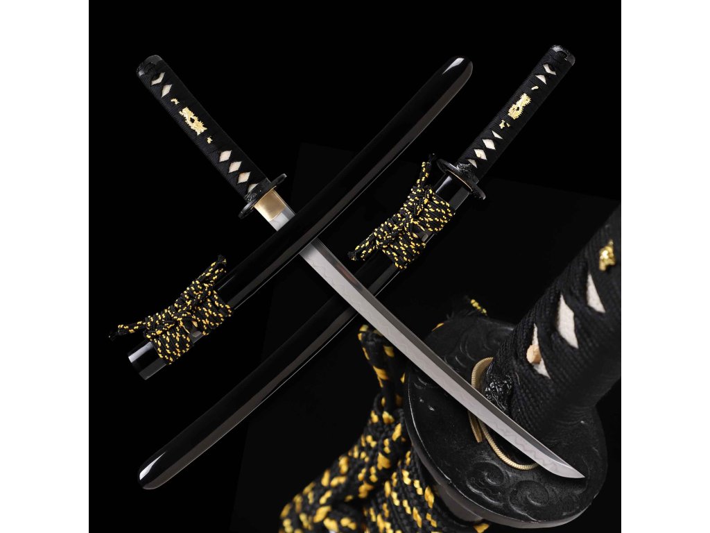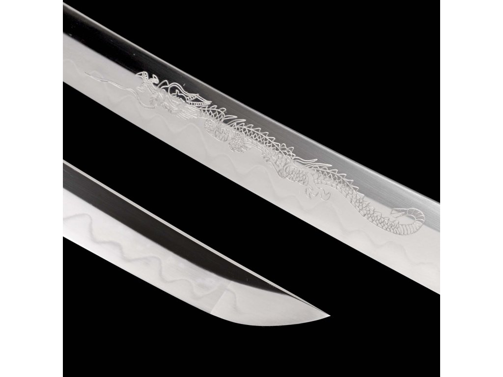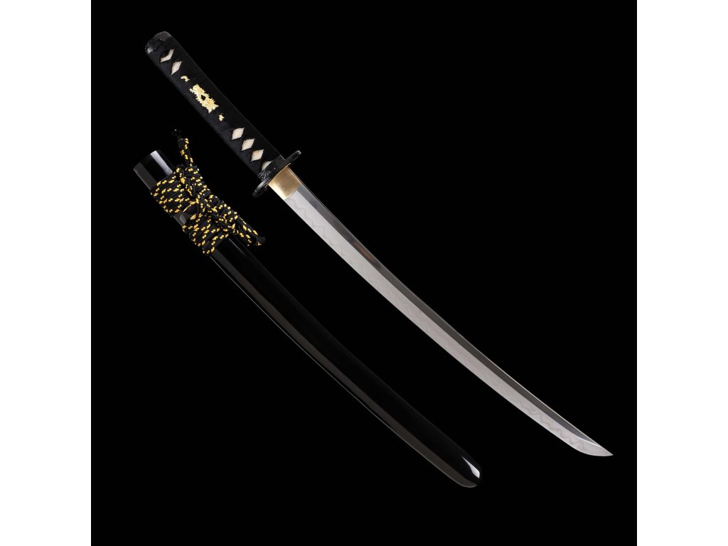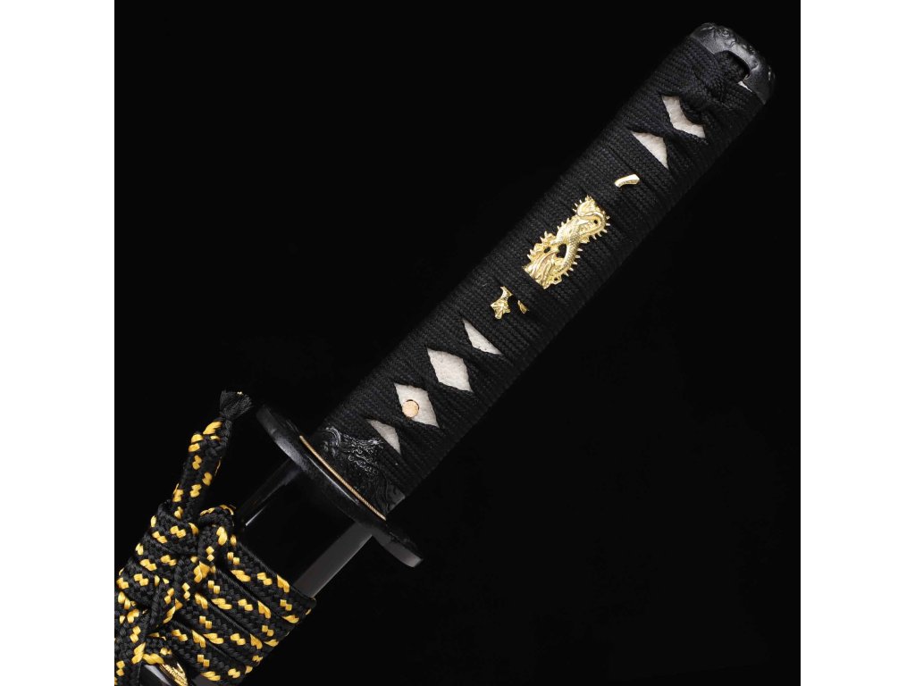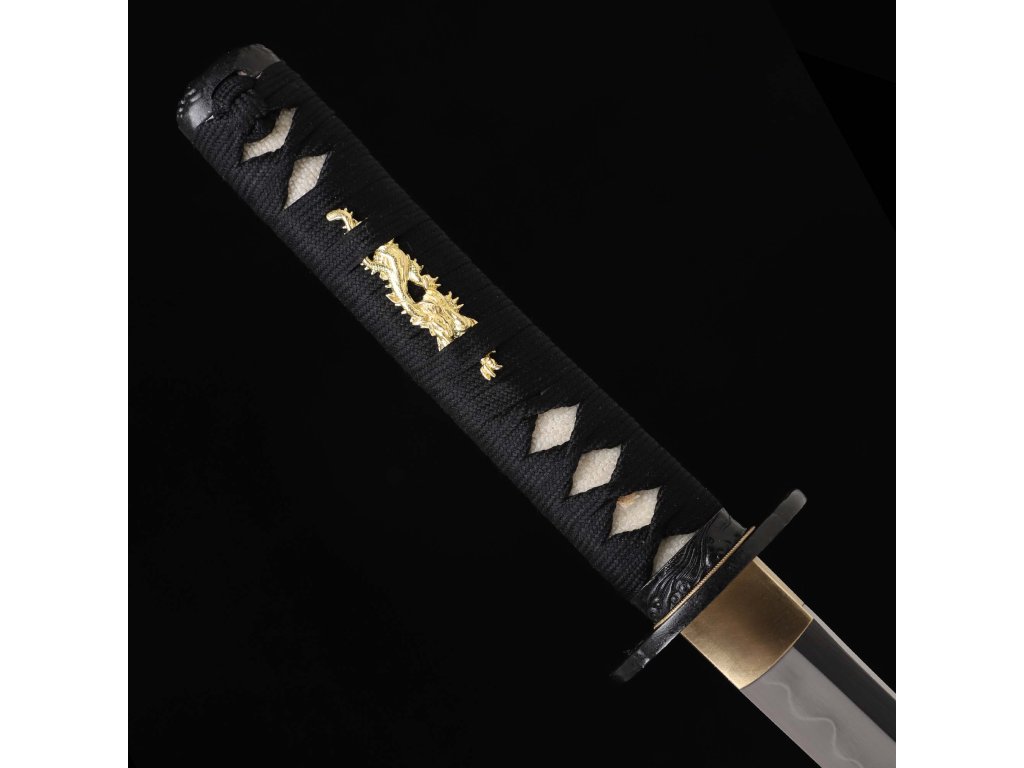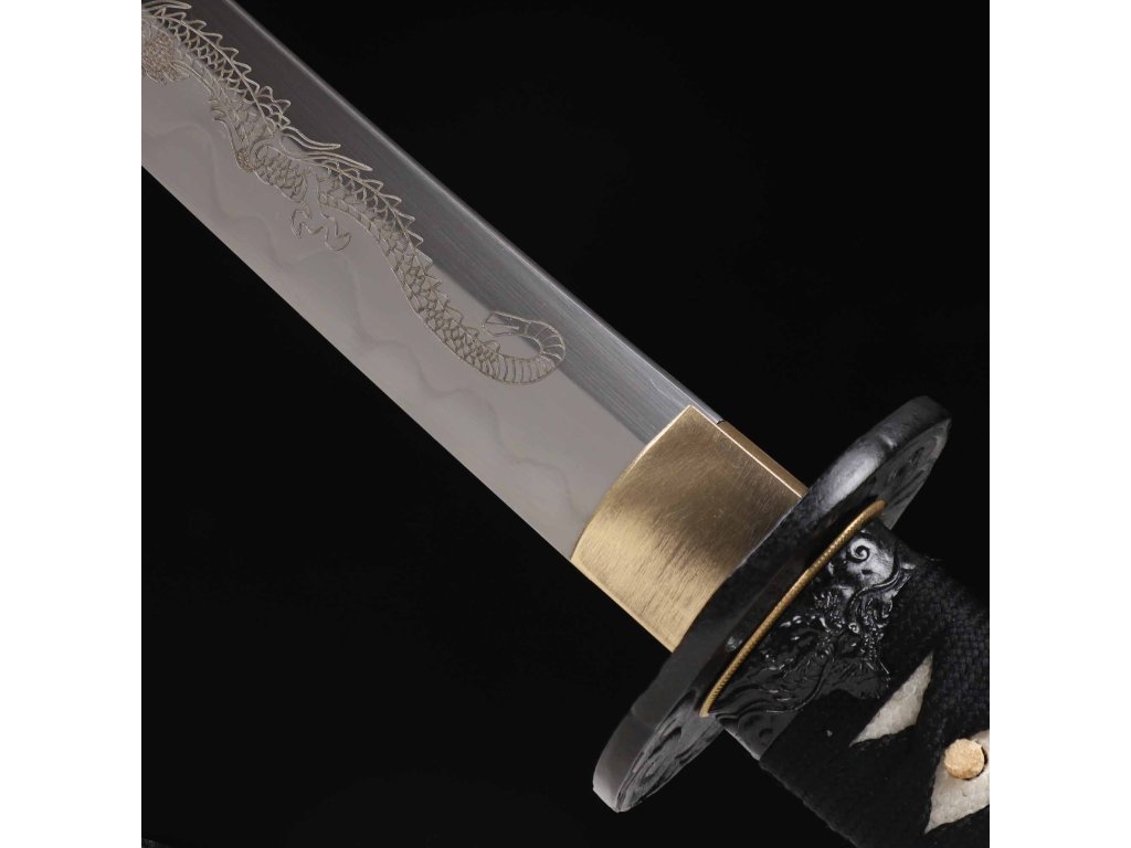 wakizashi Black Dragon Japanese Sword - T-10 Carbon Steel, Real Choji Hamon, Horimono, Yokote