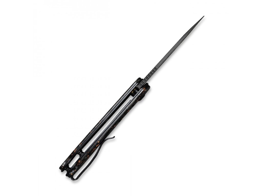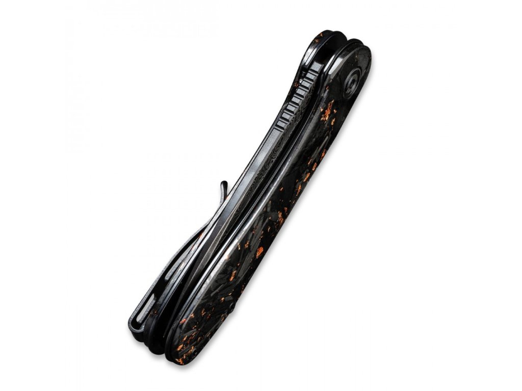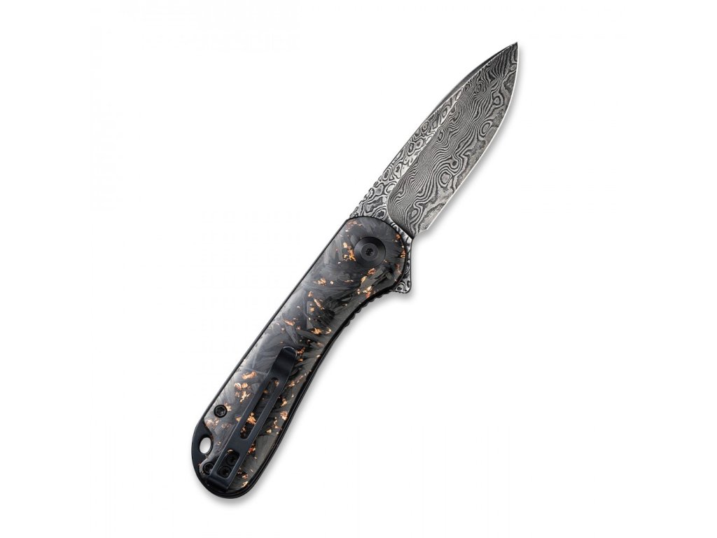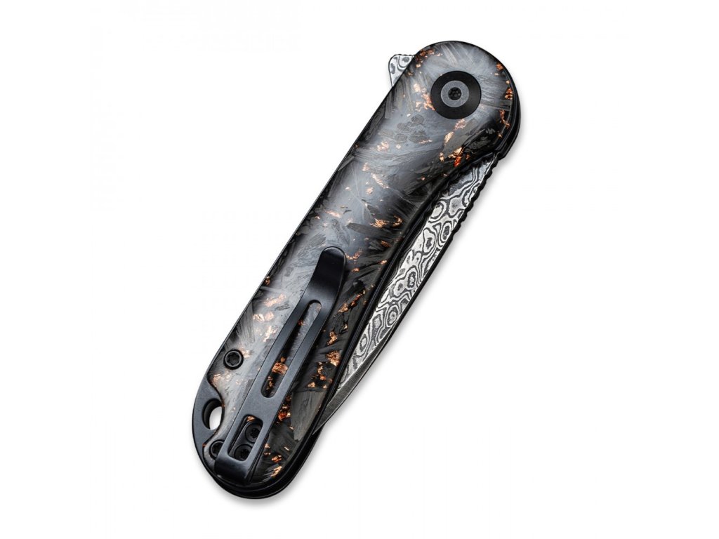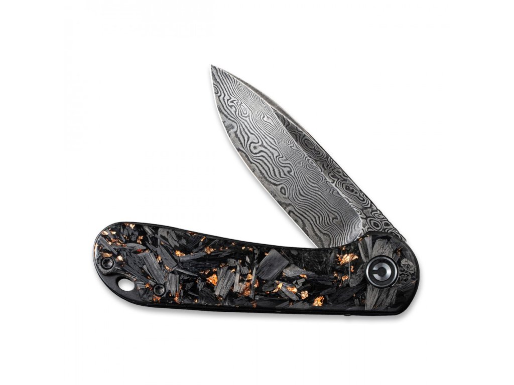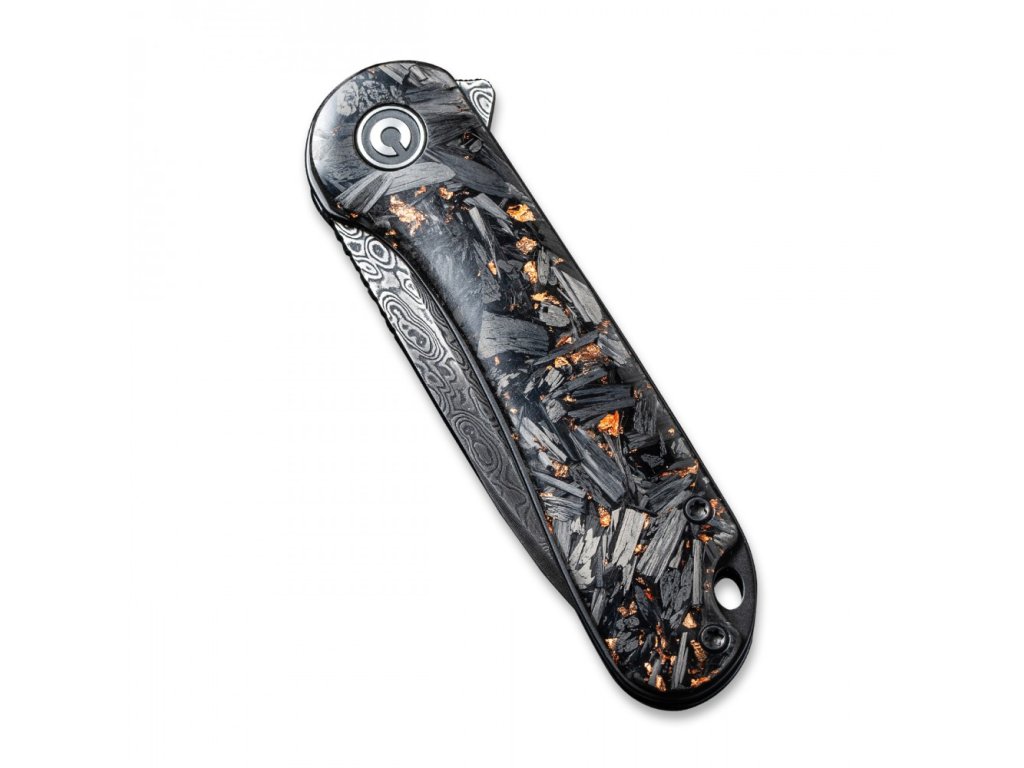 Elegantní kapesní nůž CIVIVI Elementum Copper s čepelí z nerezové damaškové oceli a rukojetí z uhlíkových vláken s měděnou drtí. Spolehlivý EDC nůž s liner lock pojistkou a nylonovým pouzdrem.