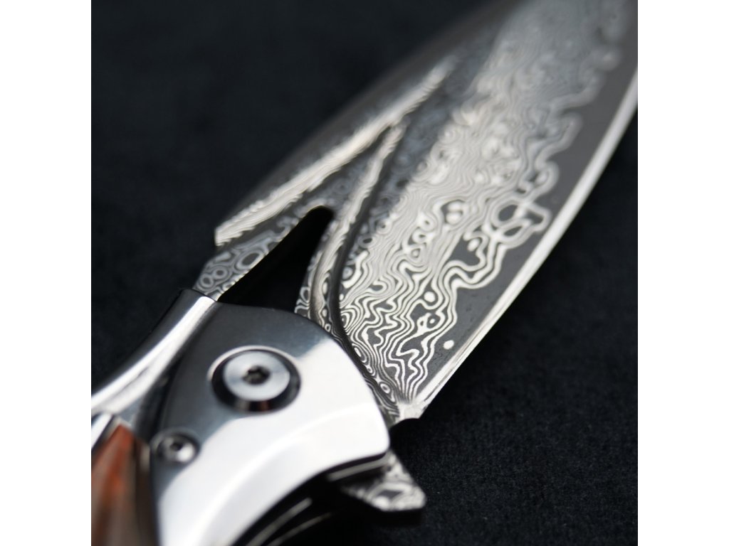 Zavírací damaškový nůž Dellinger Cloverleaf VG-10 Damascus Maple