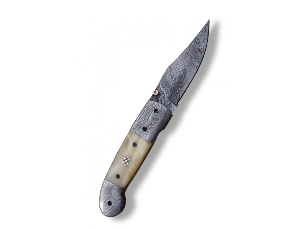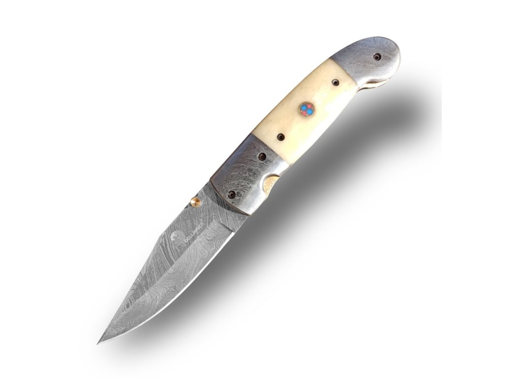 Zavírací damaškový nůž Dellinger Gunnvor Clip – velbloudí kost