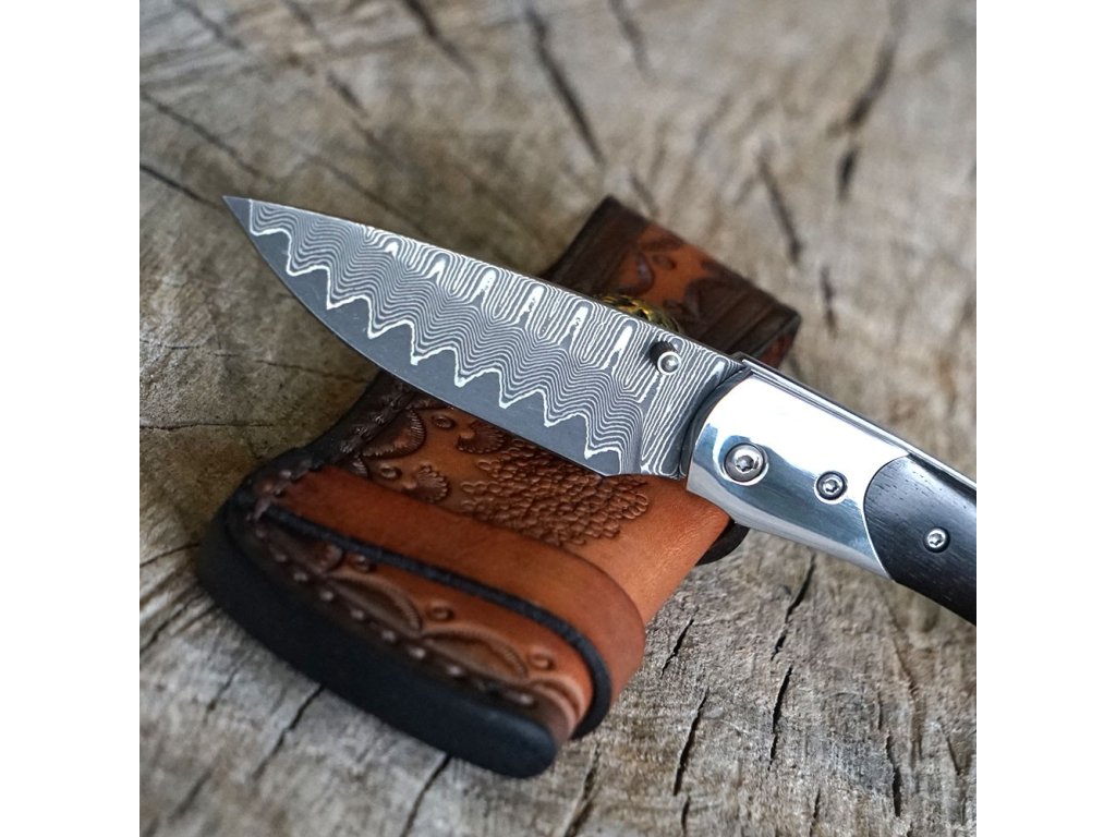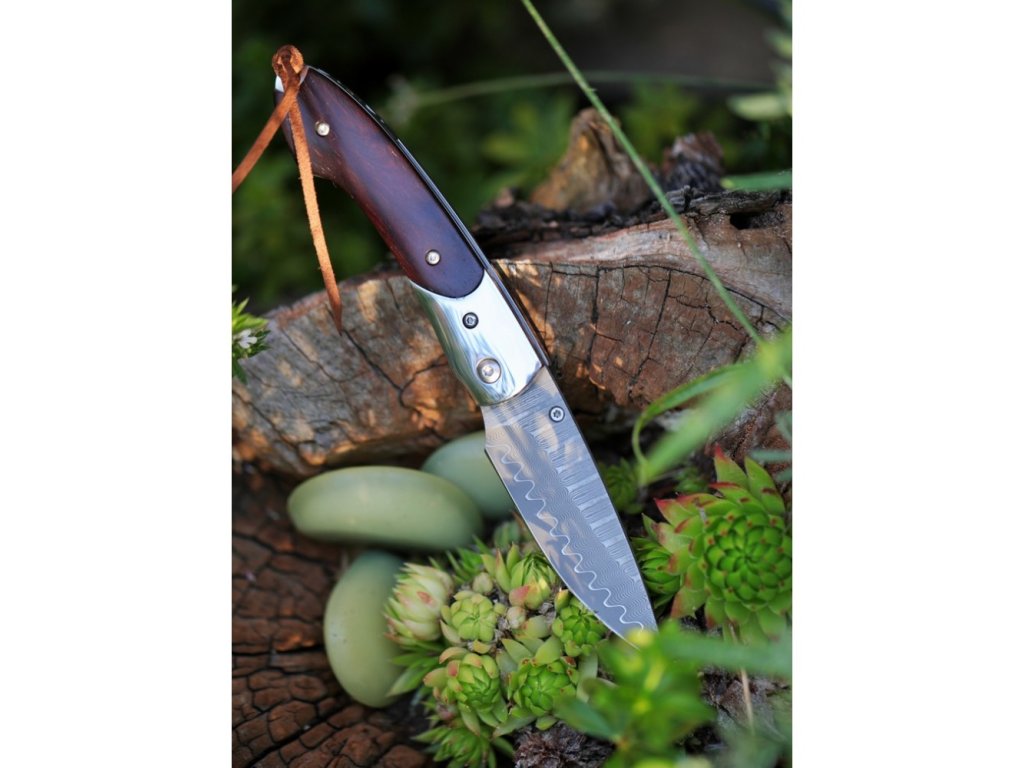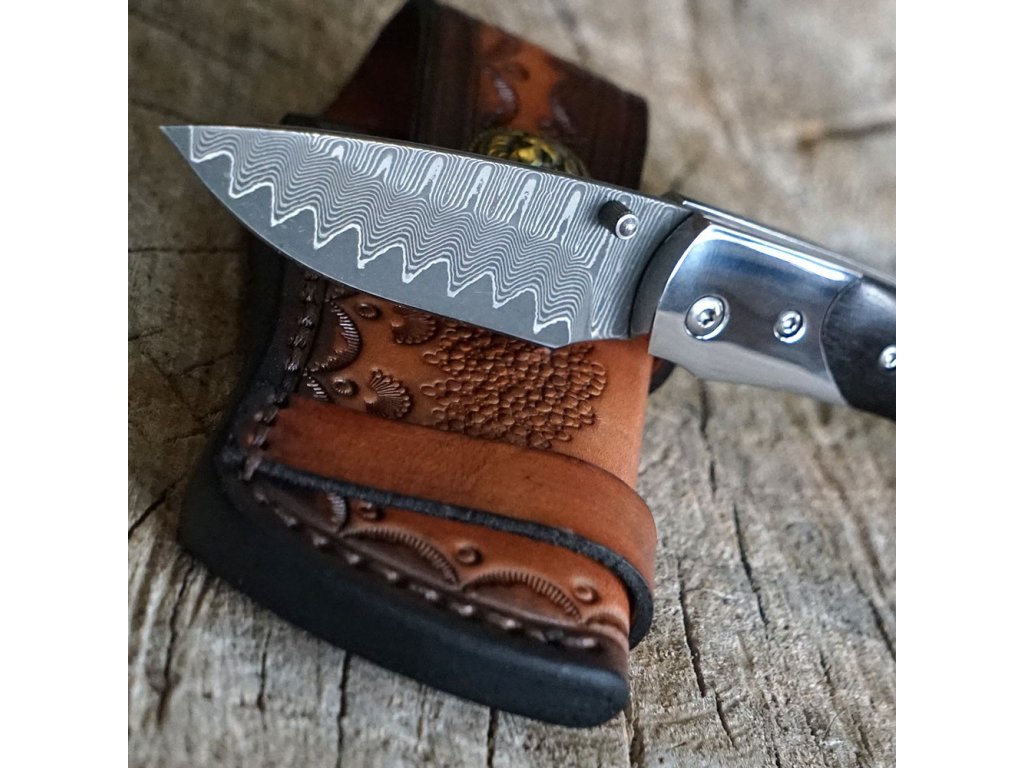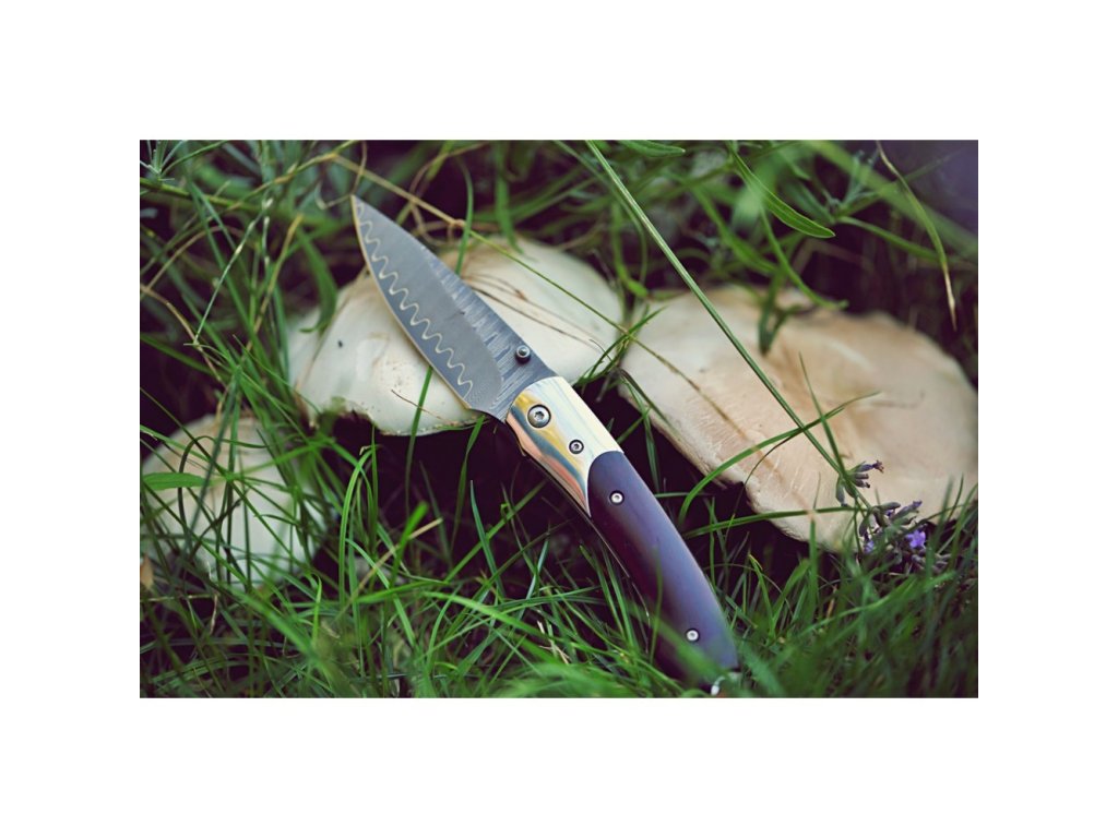 Stylový zavírací nůž Dellinger Mushroom Killer s čepelí s jádrem z oceli VG-10 vloženým mezi 66 vrstev 2 nerezových damaškových ocelí. Rukojeť je vyrobena z tmavého santalového dřeva. Ideální lovecký nůž nejen pro houbaře a milovníky přírody. Nůž je dodáván s koženým pouzdrem.