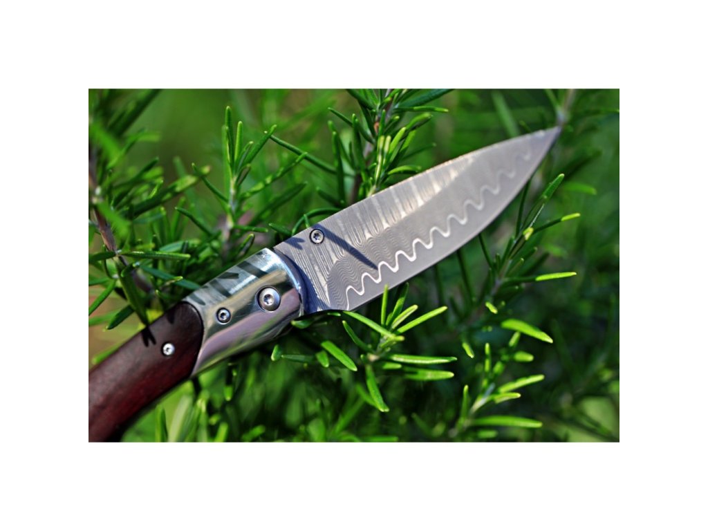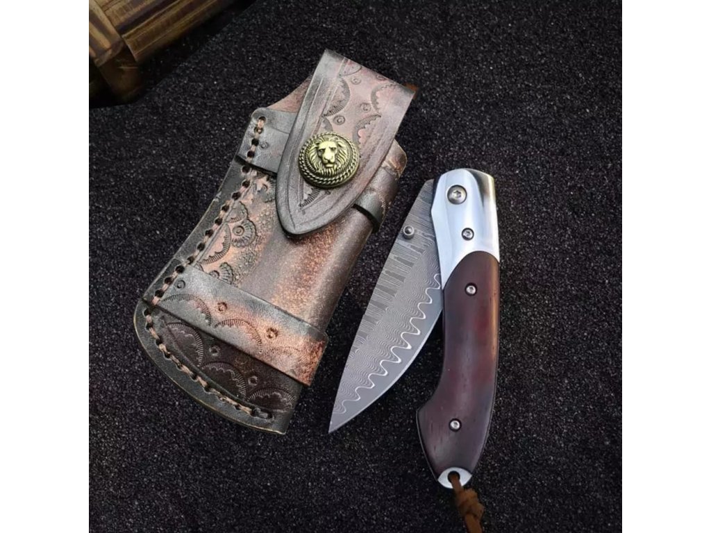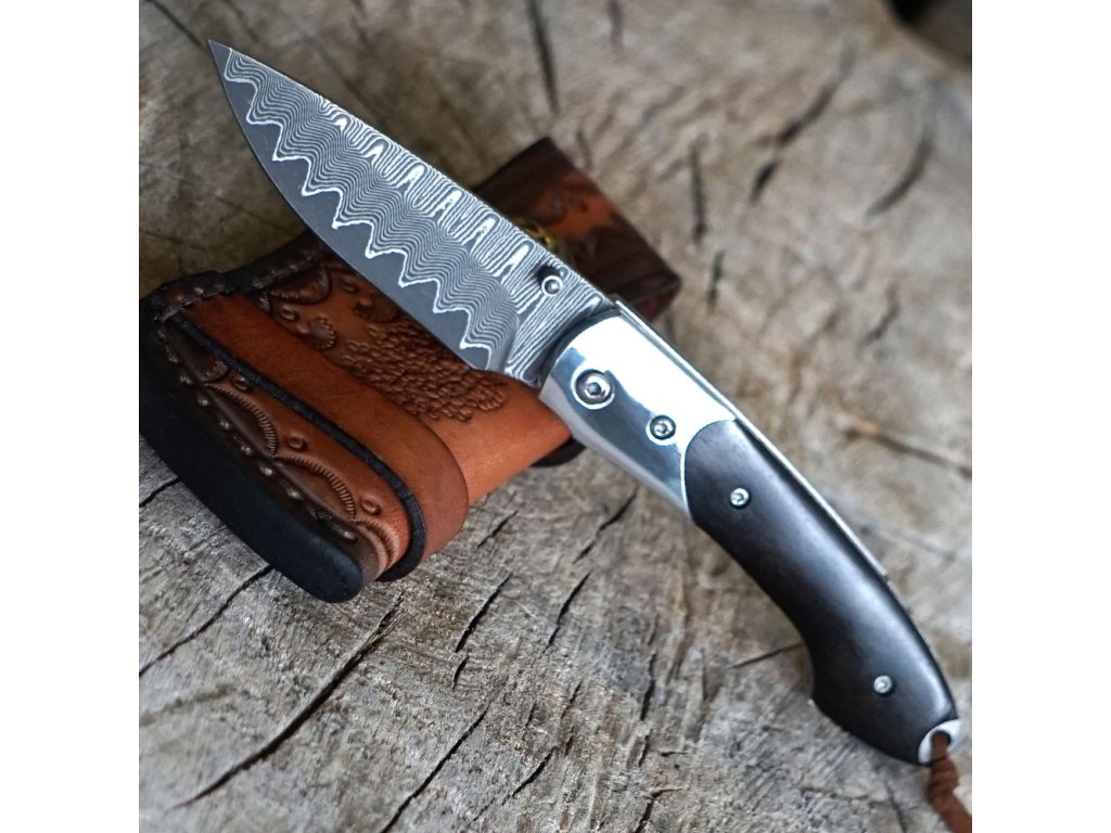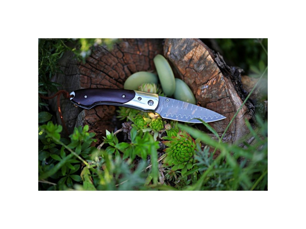 Stylový zavírací nůž Dellinger Mushroom Killer s čepelí s jádrem z oceli VG-10 vloženým mezi 66 vrstev 2 nerezových damaškových ocelí. Rukojeť je vyrobena z tmavého santalového dřeva. Ideální lovecký nůž nejen pro houbaře a milovníky přírody. Nůž je dodáván s koženým pouzdrem.