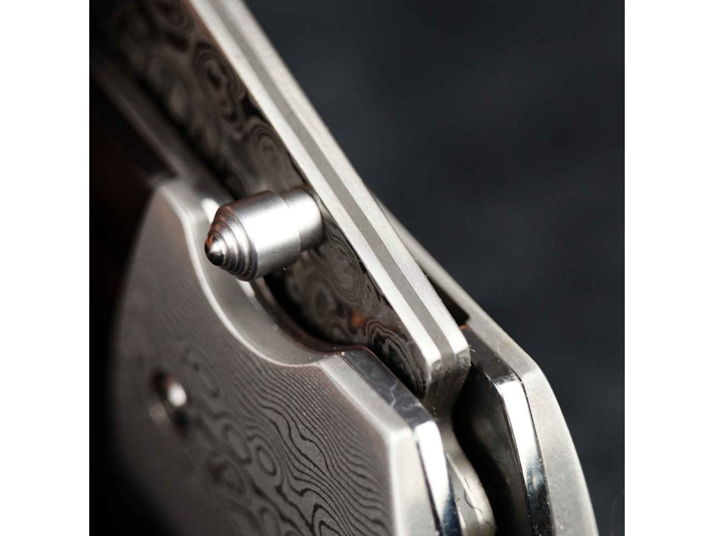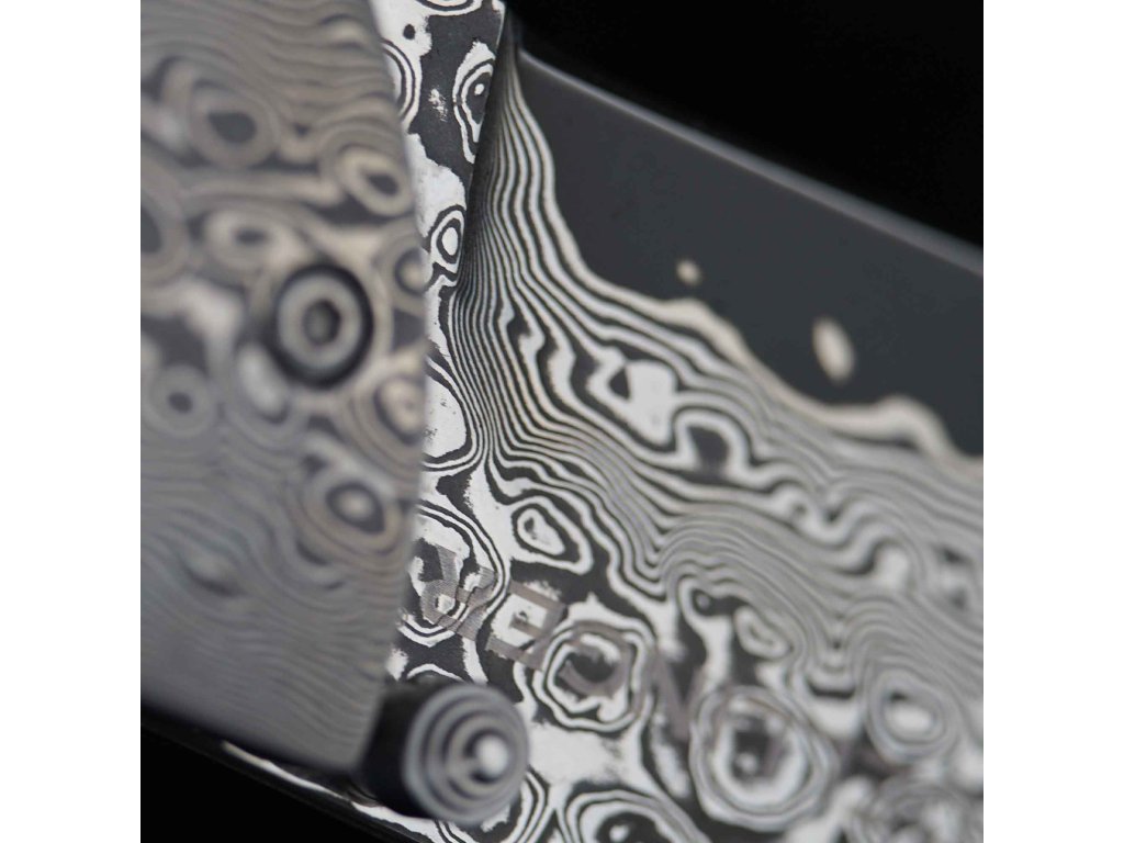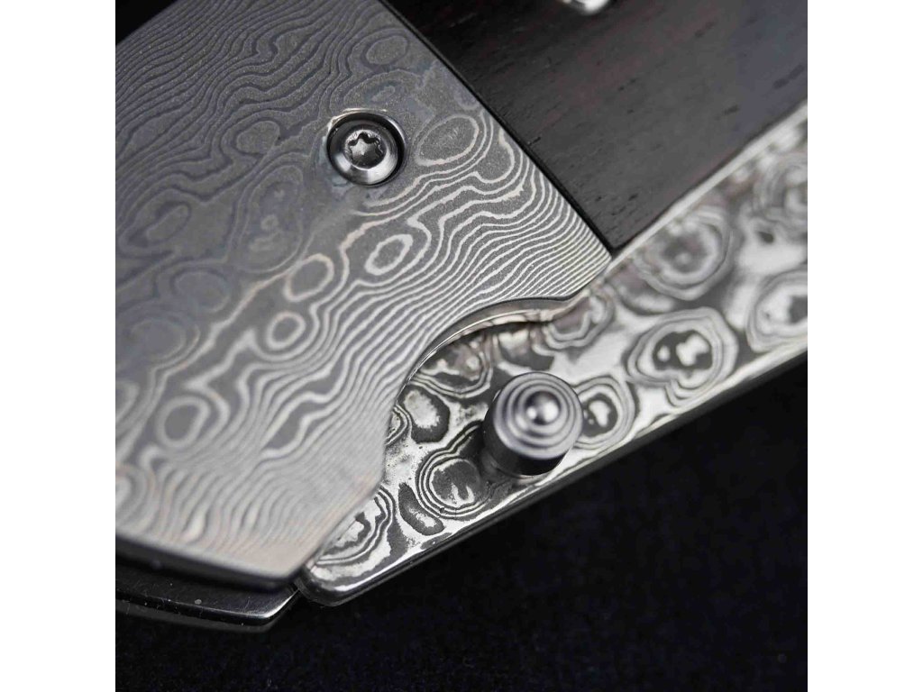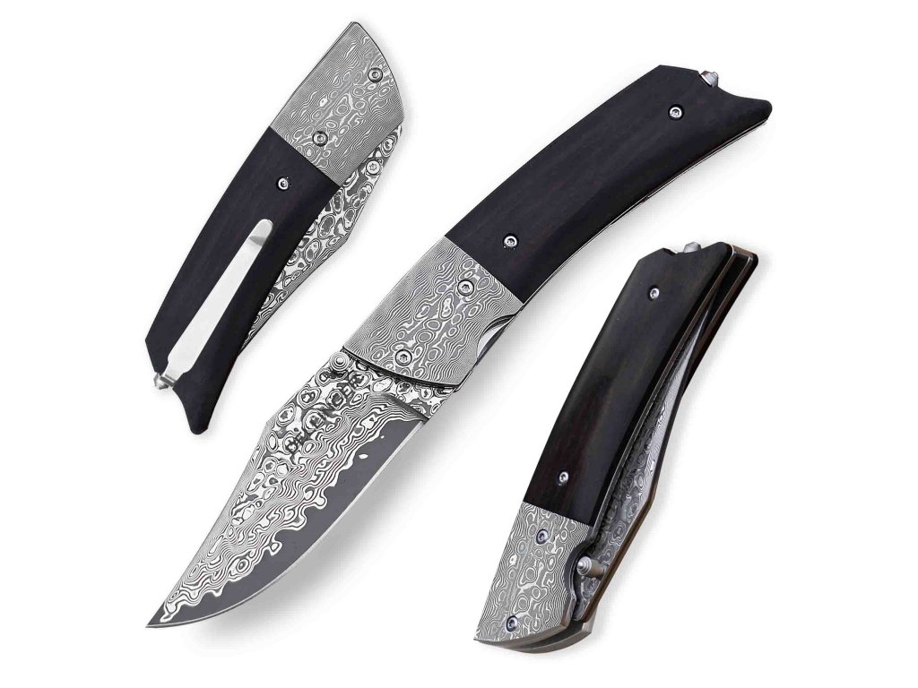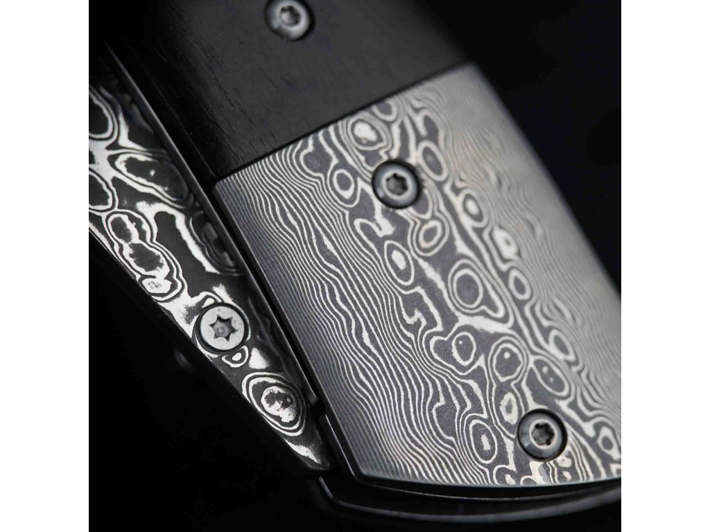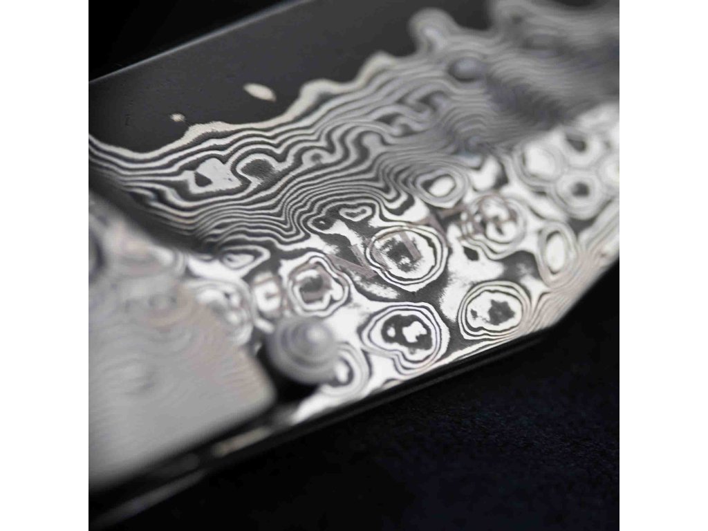 Zavírací nůž Dellinger Ragnhild s čepelí s řezným jádrem z oceli VG-10 vloženým do 66 vrstev 2 nerezových damaškových ocelí a elegantní rukojetí z ebenového dřeva je perfektní volbou pro lovce i každodenní EDC použití. Tvrdost 61 HRC, kuličková ložiska a pojistka linerlock zajišťují bezpečný a plynulý chod.
