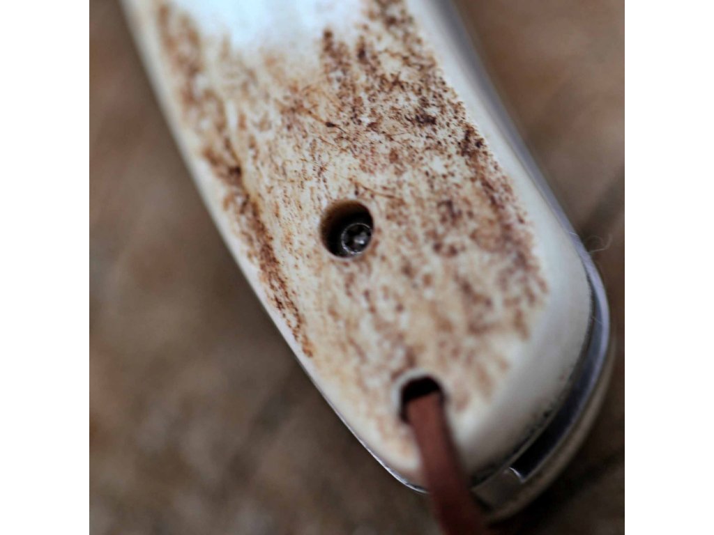 Částečky přichycené na povrchu čepele z agresivních látek mohou začít korodovat a vytvářet na povrchu nože skvrny, které vypadají jako rez. Nicméně nerezaví ostří nože, ale právě ty přichycené částečky. Na odstranění se běžně používá například jedlá soda, která po namočení vytvoří „kašičku“ a starý korkový špunt.