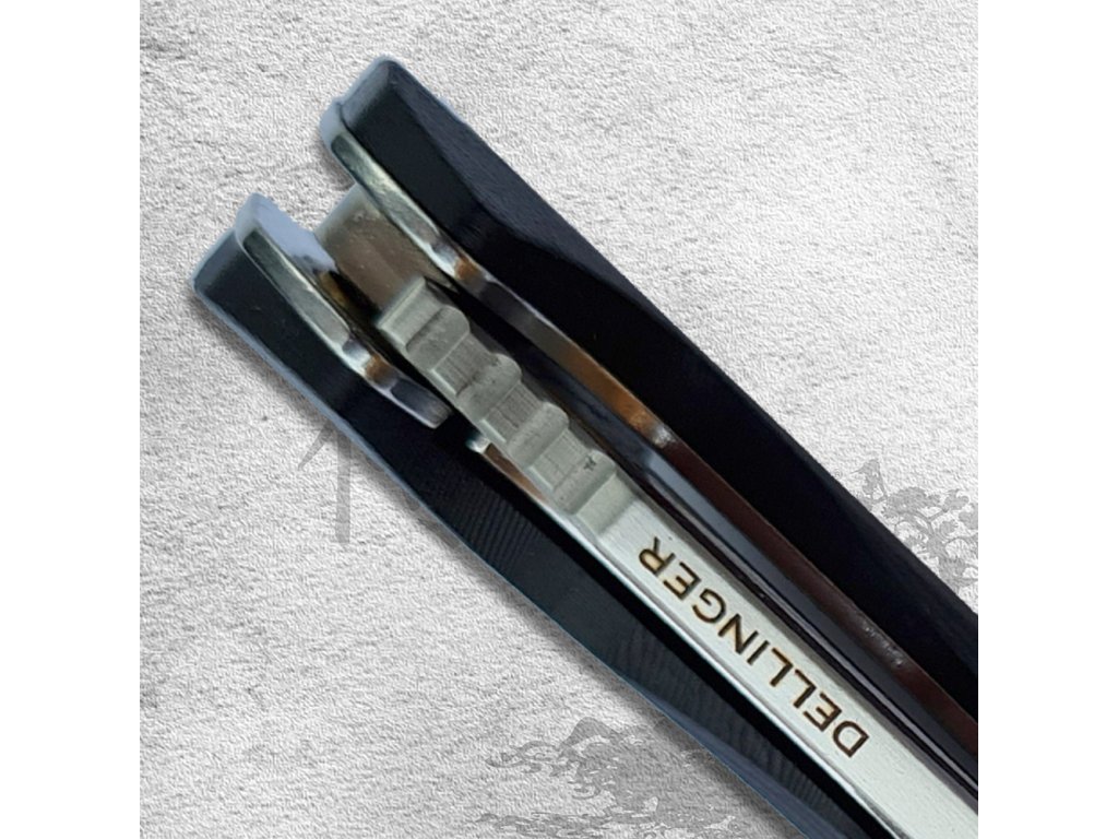 Zavírací nůž Dellinger Coyotte Flipper patří do skupiny nožů EDC a je tedy vhodný ke každodennímu nošení. Tento kousek má ideální velikost, skvělou funkčnost a parádní cenu. Čepel je z nerezové oceli 8Cr14MoV, která je ekvivalentní k japonské oceli AICHI AUS-8. Rukojeť je z materiálu G10 černé barvy. Nůž je dodávaný bez pouzdra.